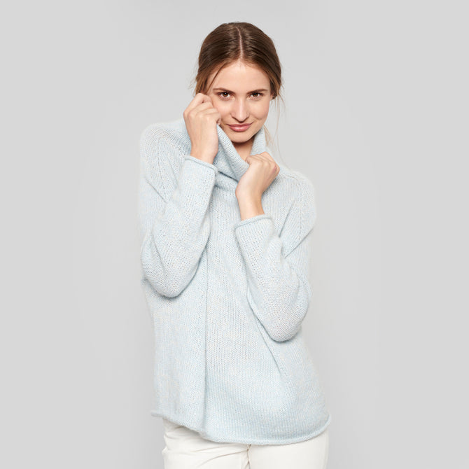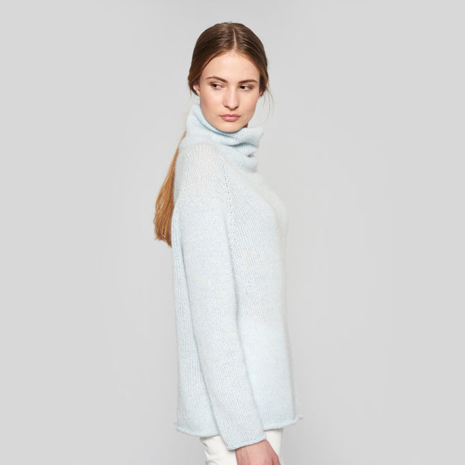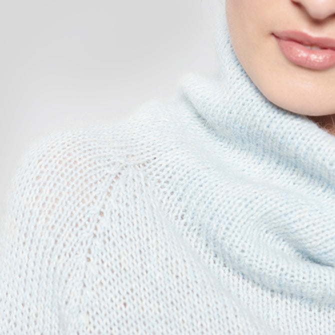 Hitra Blusen er en dejlig, blød bluse, der falder flot. Modellen er simpel og enkel at strikke. Blandingen af Kid Mohair og Alpaka giver et flot spil i både farve og materiale.