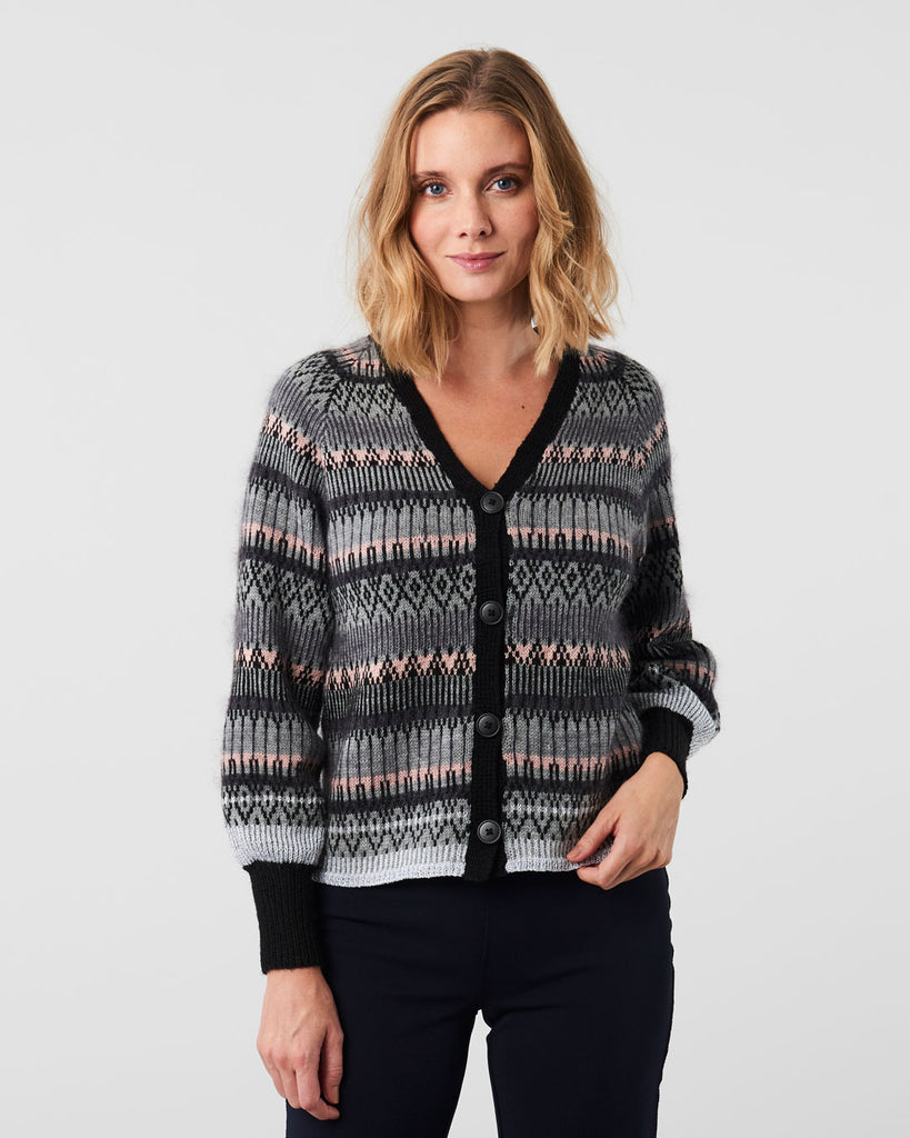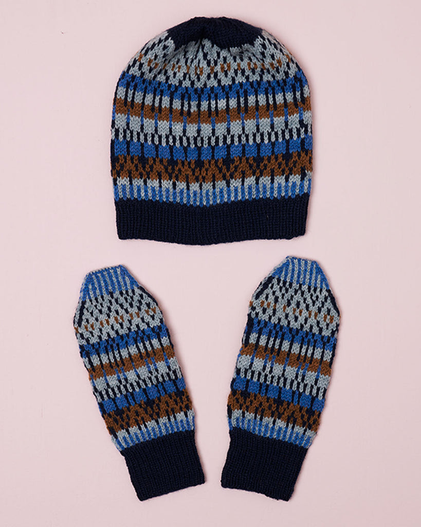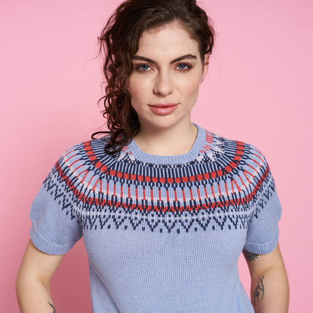 Baggen er et af vores signaturmønstre, der med sit mix af flerfarvestrik, garnkvaliteter og grafiske linjer får et ægte Kit Couture look. Baggen-mønstret er designet til strik som bluse, T-shirt, to typer af cardigans, strømper, hue og vanter, og julekugler samt en fin broderet clutch. Baggen er designet af Kit Coutures faste designteam.
