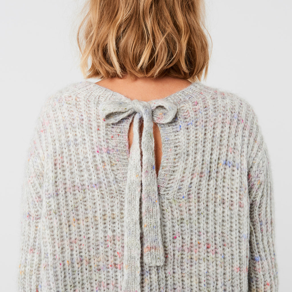 På bagstykket kan du vælge mellem at strikke en slids med bindebånd eller en almindelig ryg.
