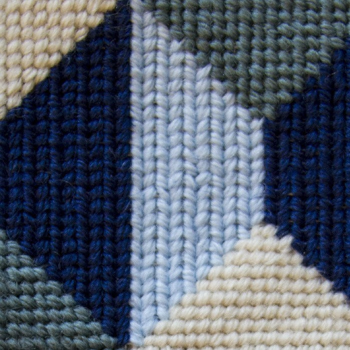 Bredholm har et grafisk mønster i fire matchende farver, som er designet i samarbejde med Sine Stenbek. Puden broderes i vores uldbroderigarn med halve korssting. Stingene broderes i forskellige retninger, hvilket giver en flot vævet effekt.