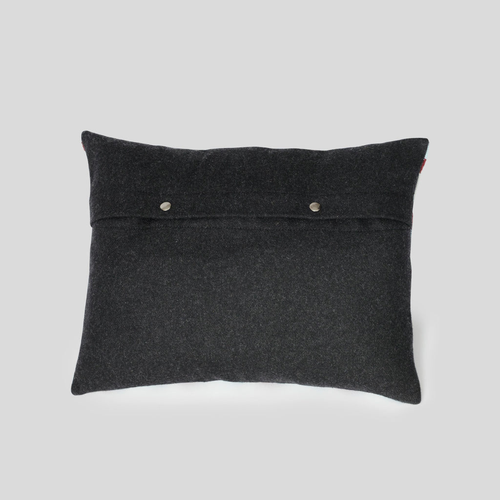 - Bagbeklædning i lysegrå uld med metal trykknapper