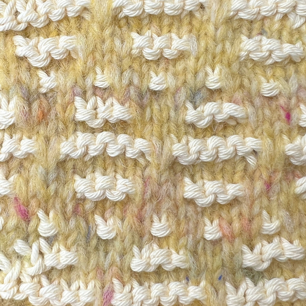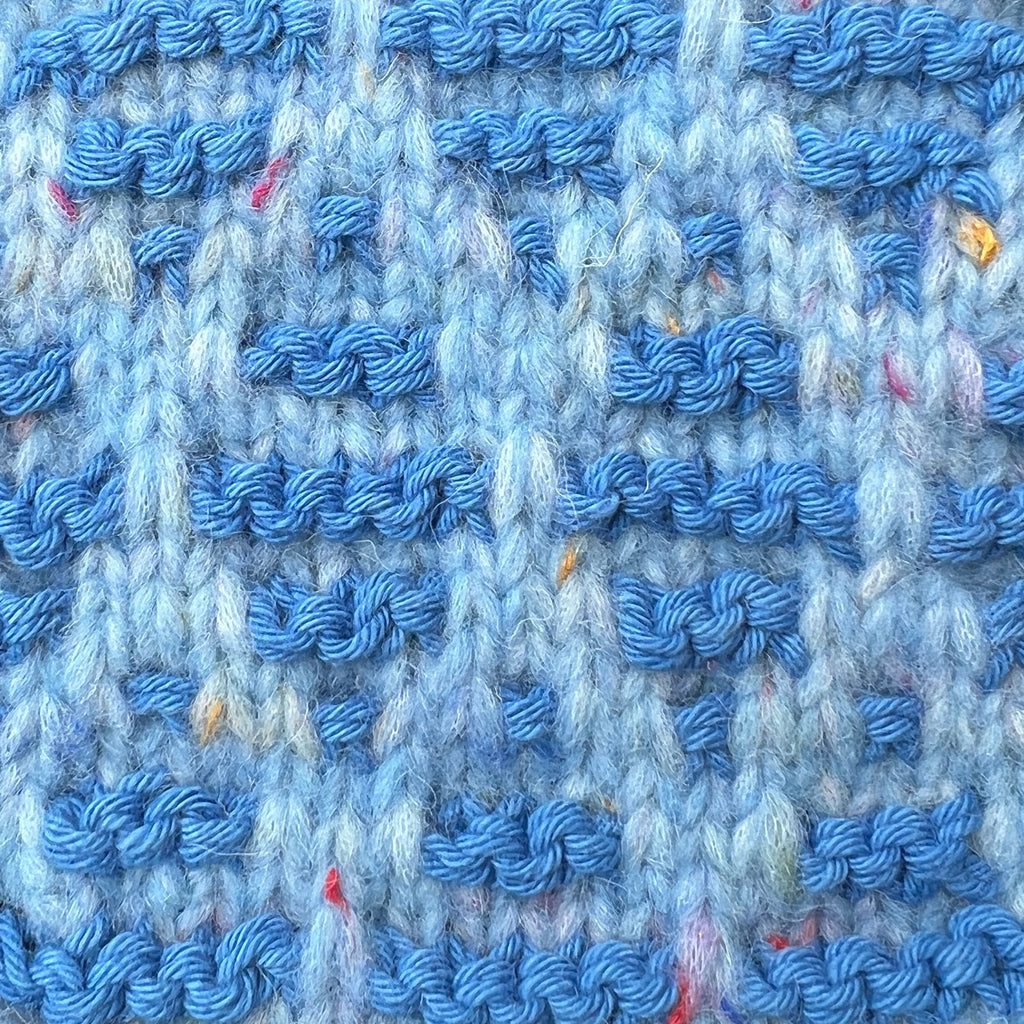 Med vævestrik kan du strikke smukke, flerfarvede mønstre uden at skulle strikke med flere farver på samme pind. Teknikken udføres i stedet med hævemasker, der fører farven med op over de næste pinde. Frederiksø Taske er et godt projekt, hvis du vil i gang med denne teknik, da du primært skal koncentrere dig om teknikken og ikke om eksempelvis ind- og udtagninger.