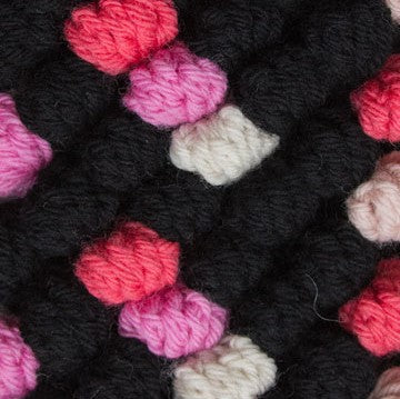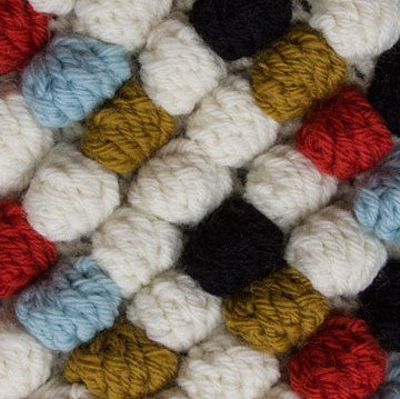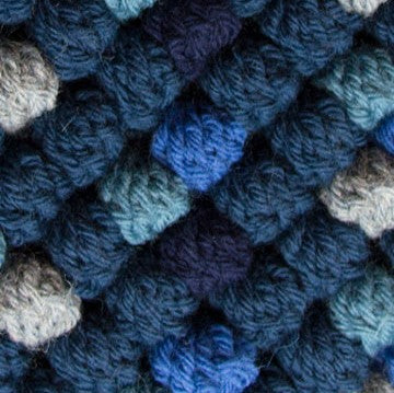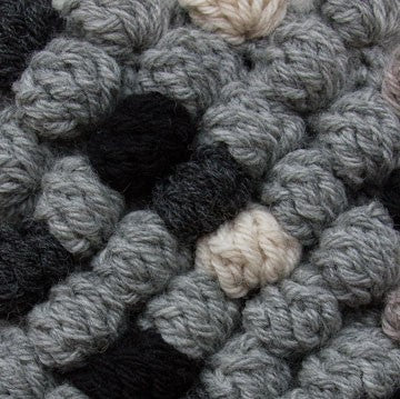 Puden hækles i den blødeste 100% Highland uld, og fås i hele seks smukke farvekombinationer.