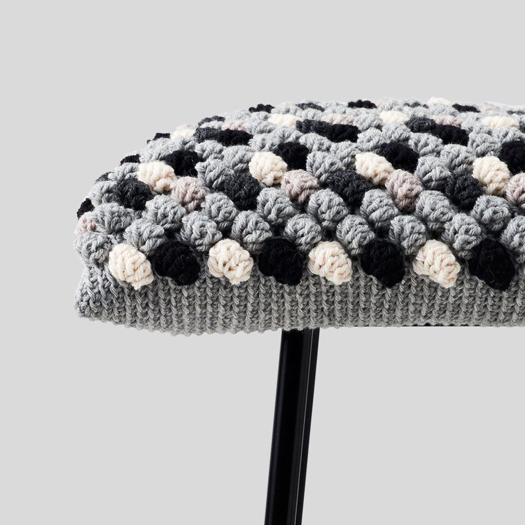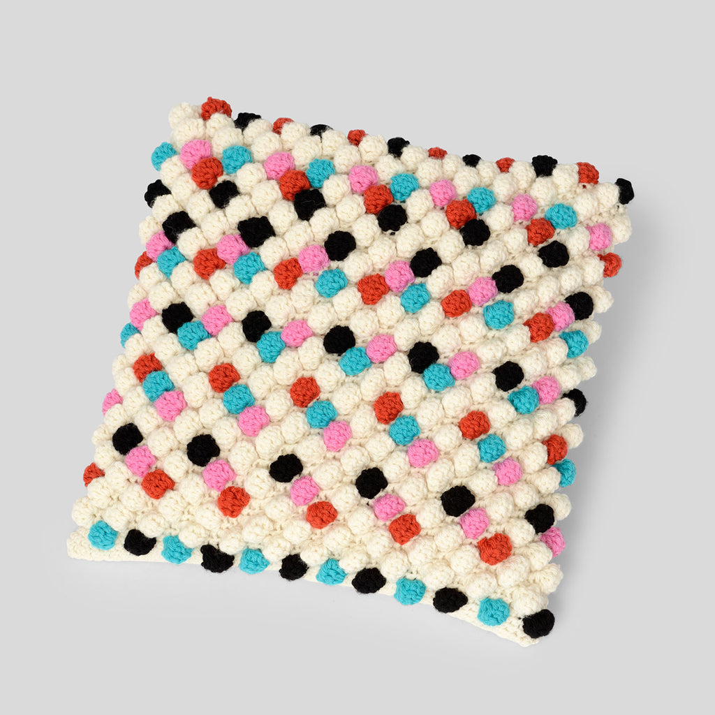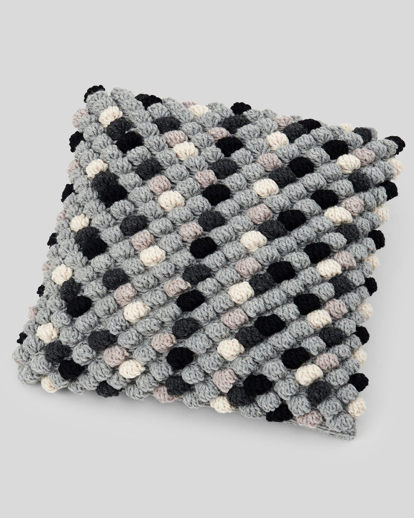 Boblerne i Øksø Puden giver et flot perspektiv - og man kan slet ikke lade være med at pille ved dem. Puden er designet af strikdesigner Lærke Bagger.