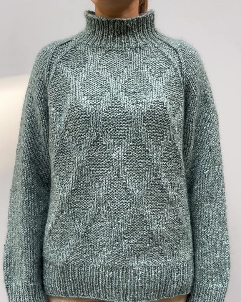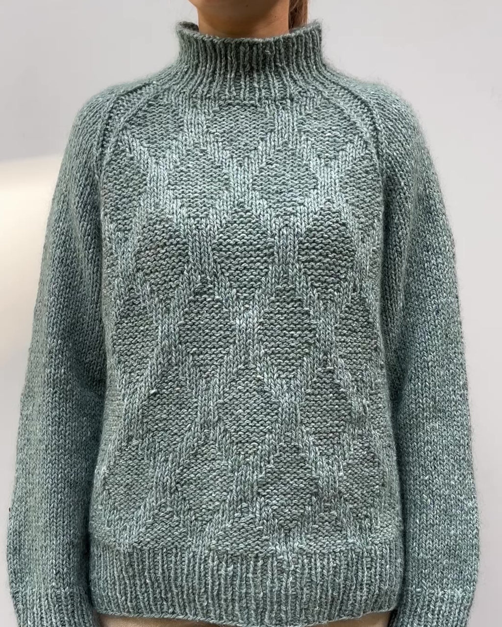 Fyn Sweater strikkes rundt nedefra og op med strukturmønster på kroppen og glatstrikkede ærmer. Ribkanterne for og bag strikkes hver for sig med udtagninger i siderne, hvorefter de samles, og kroppen strikkes rundt. Krop og ærmer strikkes hver for sig og samles til bærestykket, der strikkes med brede raglanmarkeringer.