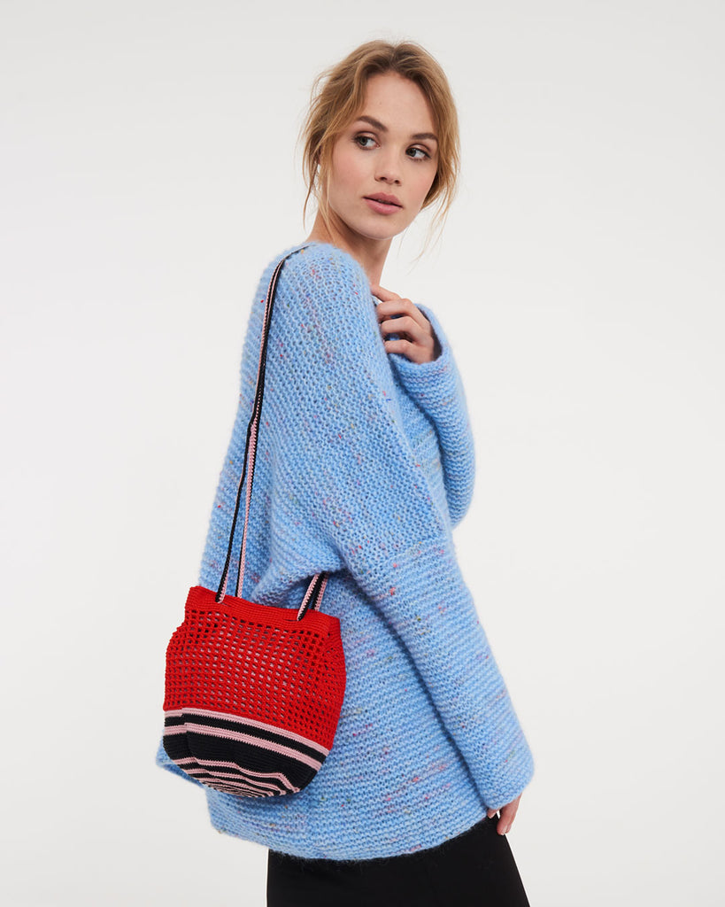 Kiatak Snøretaske er en oplagt taske, når du skal have småting med på farten. Snøretasken hækles med vores Shiny Cotton i tre matchende farver. Denne taske er sjov at hækle, da den har flere fine finesser såsom bånd og to lag, som skal hækles sammen.