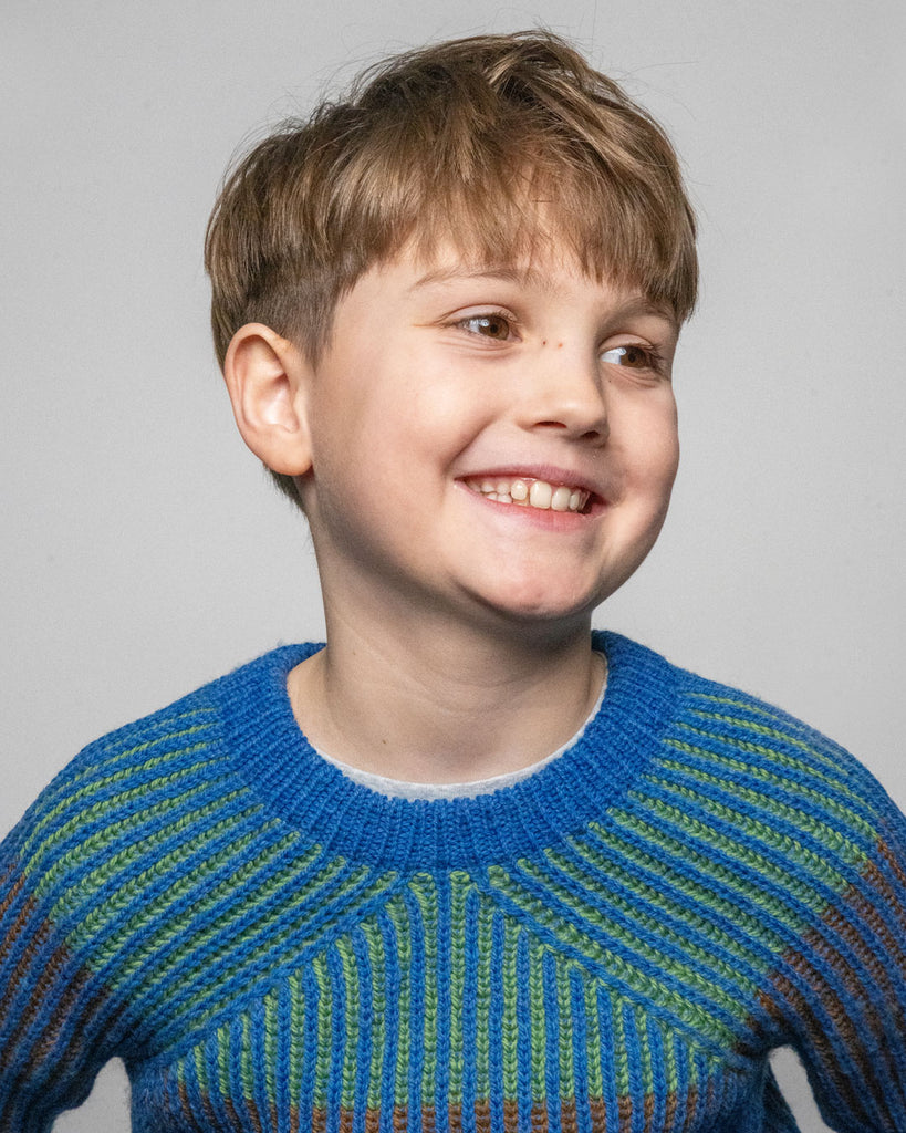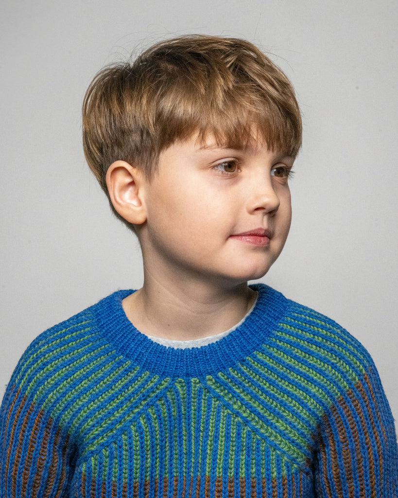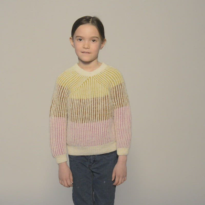 Karrat Sweater er den perfekte helårssweater til både små og store børn. Sweateren strikkes i tofarvet patent med Highland Mini garn og fås i mange smarte farvekombinationer, så der noget for ethvert barn!