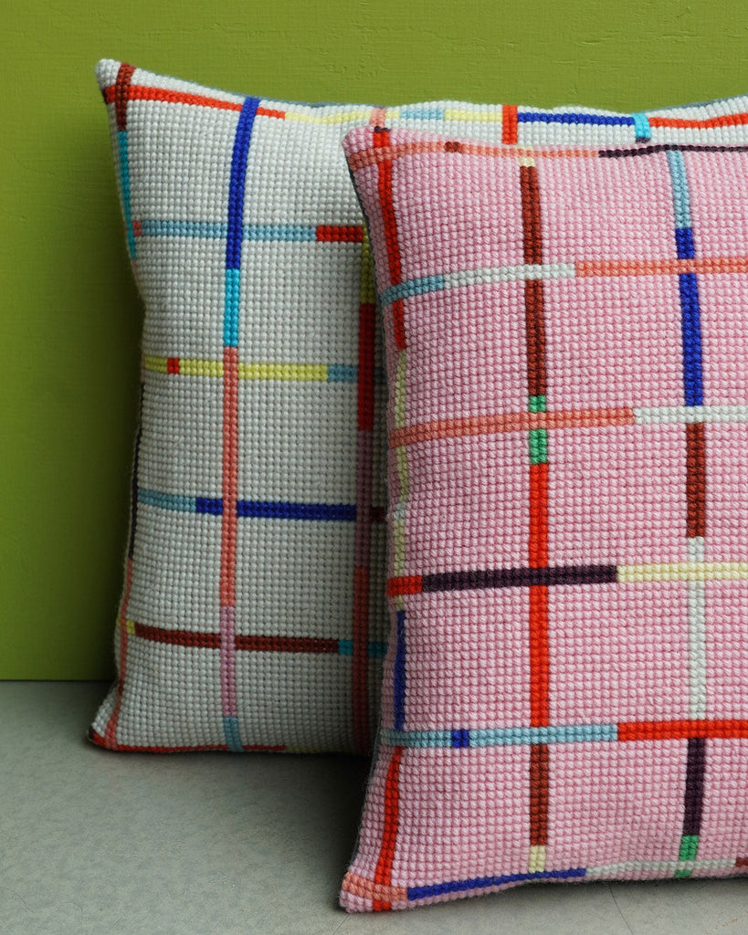 Gotland Pude er ideel, hvis du gerne vil i gang med at brodere - og godt kan lide smukke farver i et smukt, grafisk design. Den broderes med korssting på kraftig stramaj, som er let at komme i mål med. Gotland er designet i samarbejde med designduoen HVASS&HANNIBAL.