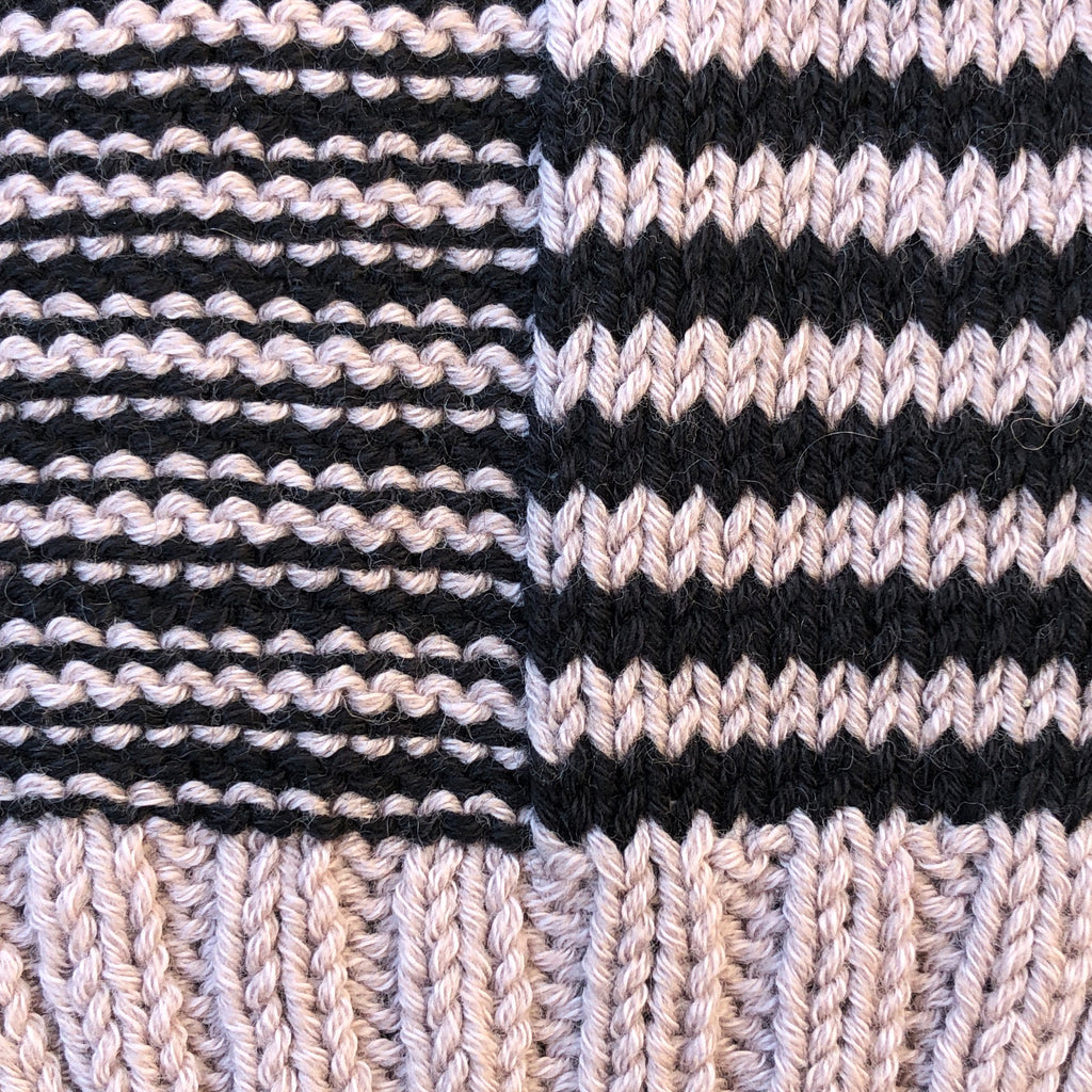 Nedefra og op, glatstrik, omvendt glatstrik, striber