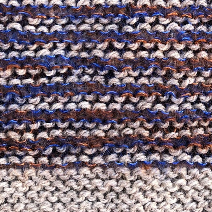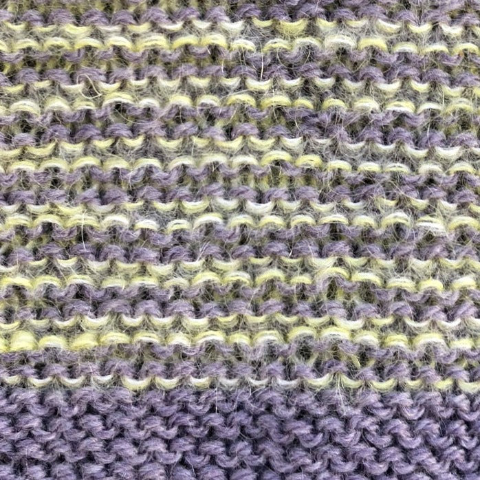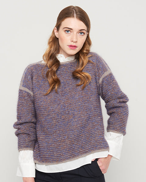 Grunnet Sweater strikkes nedefra og op i striber og retriller. Striberne strikkes skiftevis i en tråd uld og to tråde mohair i forskellige farver. Sweateren har bådhals og slidser i siderne.  Denne model er også oplagt som projekt til alle dine mohair-rester.