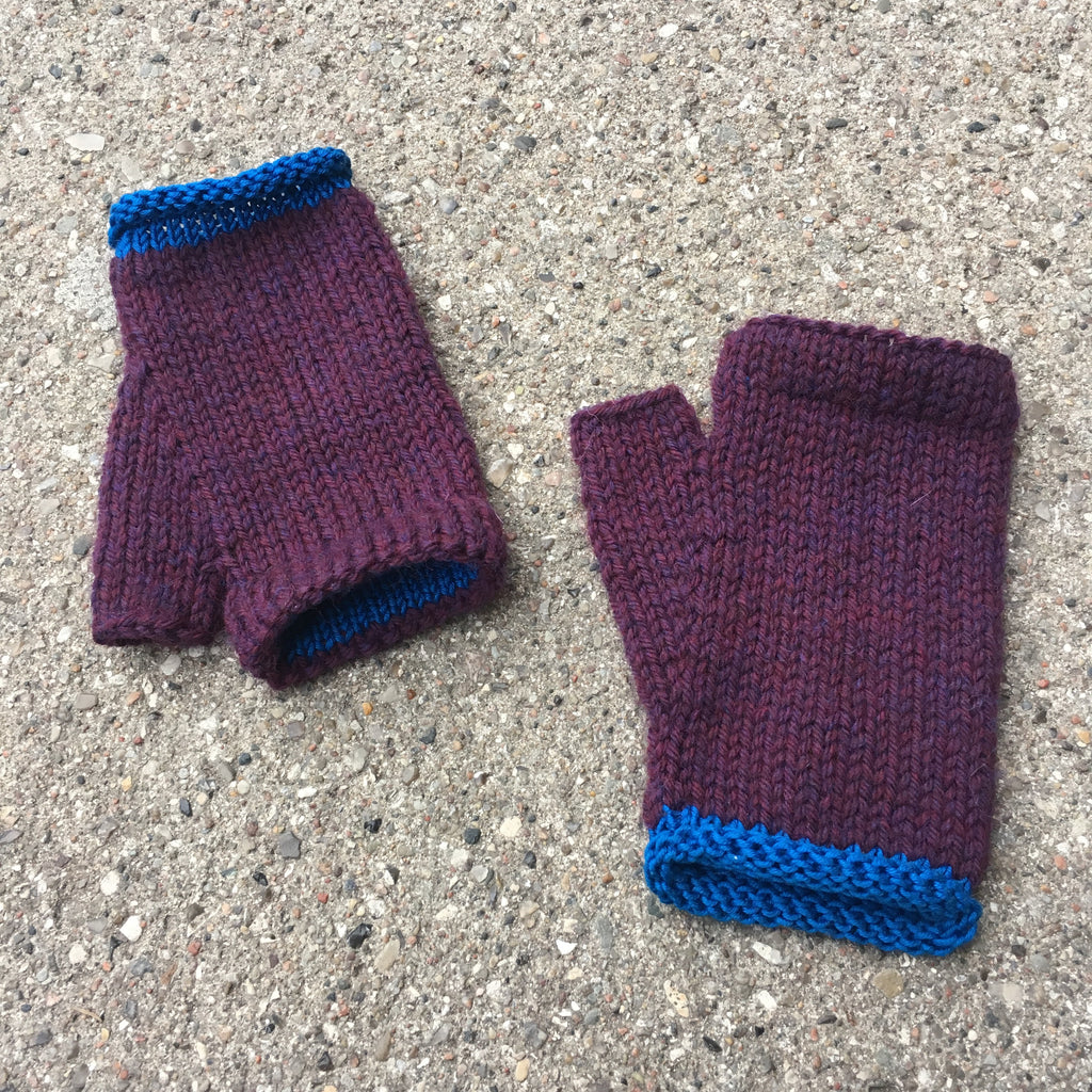 Strik et par fikse halvvanter i Highland garnrester med kanter af Shiny Cotton.