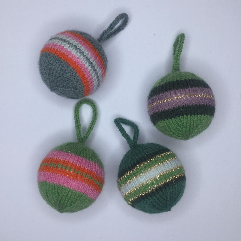 Med ganske lidt Highland Mini garn kan du strikke disse fine, raffinerede julekugler.