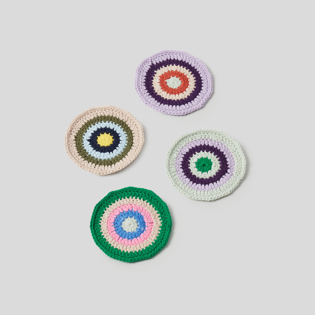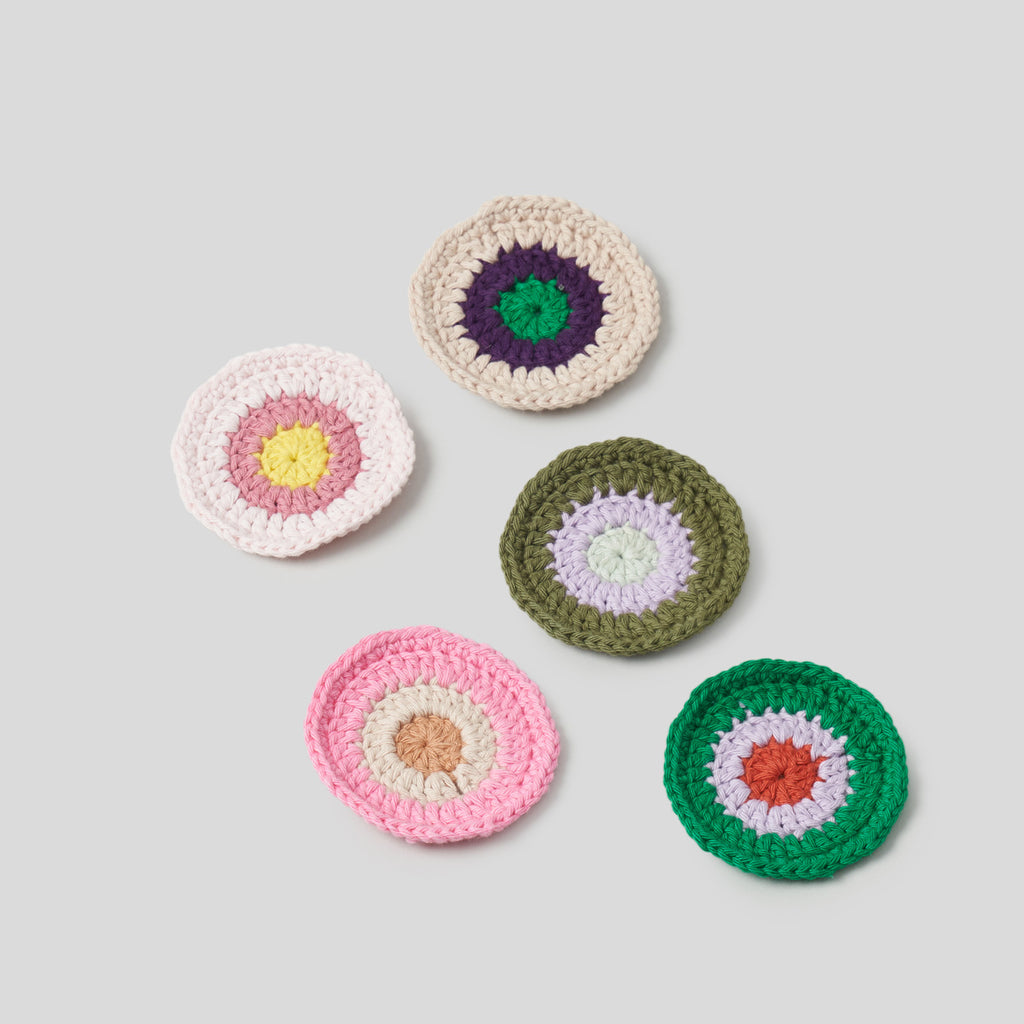 Undgå pletter på dit bord med disse fine coasters, som du kan hækle med dine Cotton garnrester.