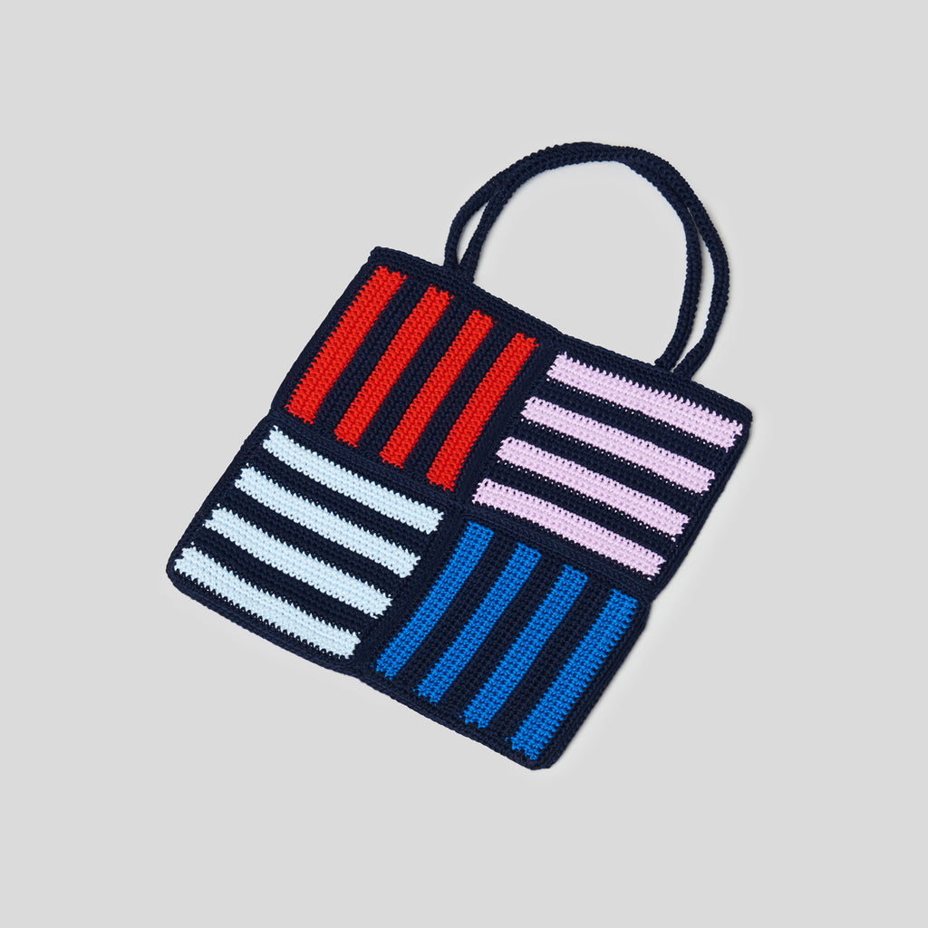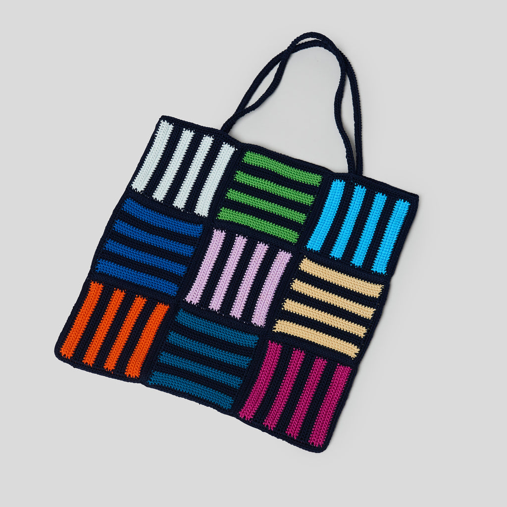 Opskrift på et hæklet net i shiny cotton, hvor du kan være kreativ med farve-sammensætningen.