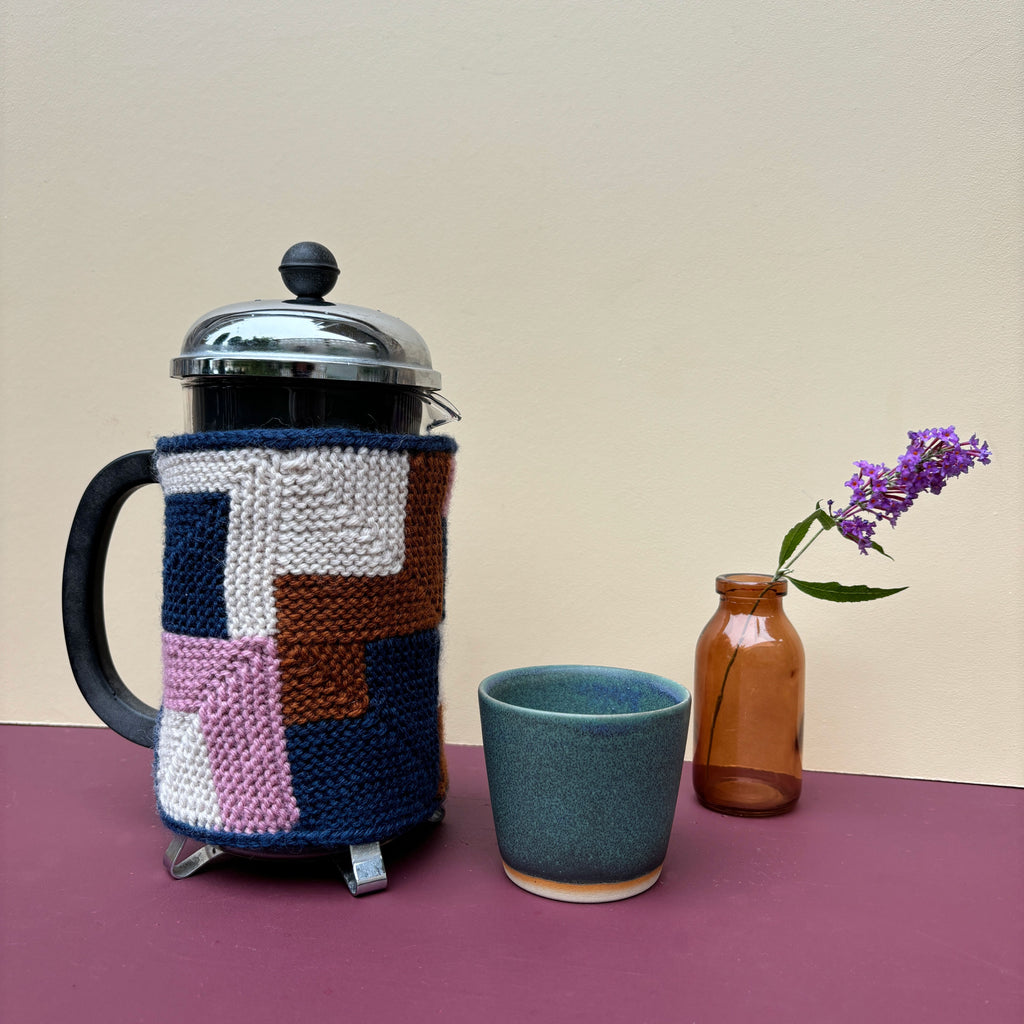 Brug dine Highland rester til at strikke denne kaffevarmer i teknikken dominostrik.