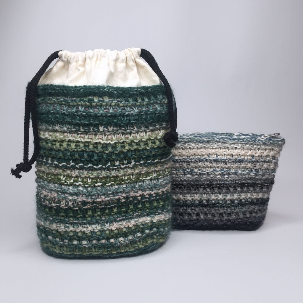 Strik en taske eller clutch af dine blandede restegarner i den smukke vævestrik-teknik.