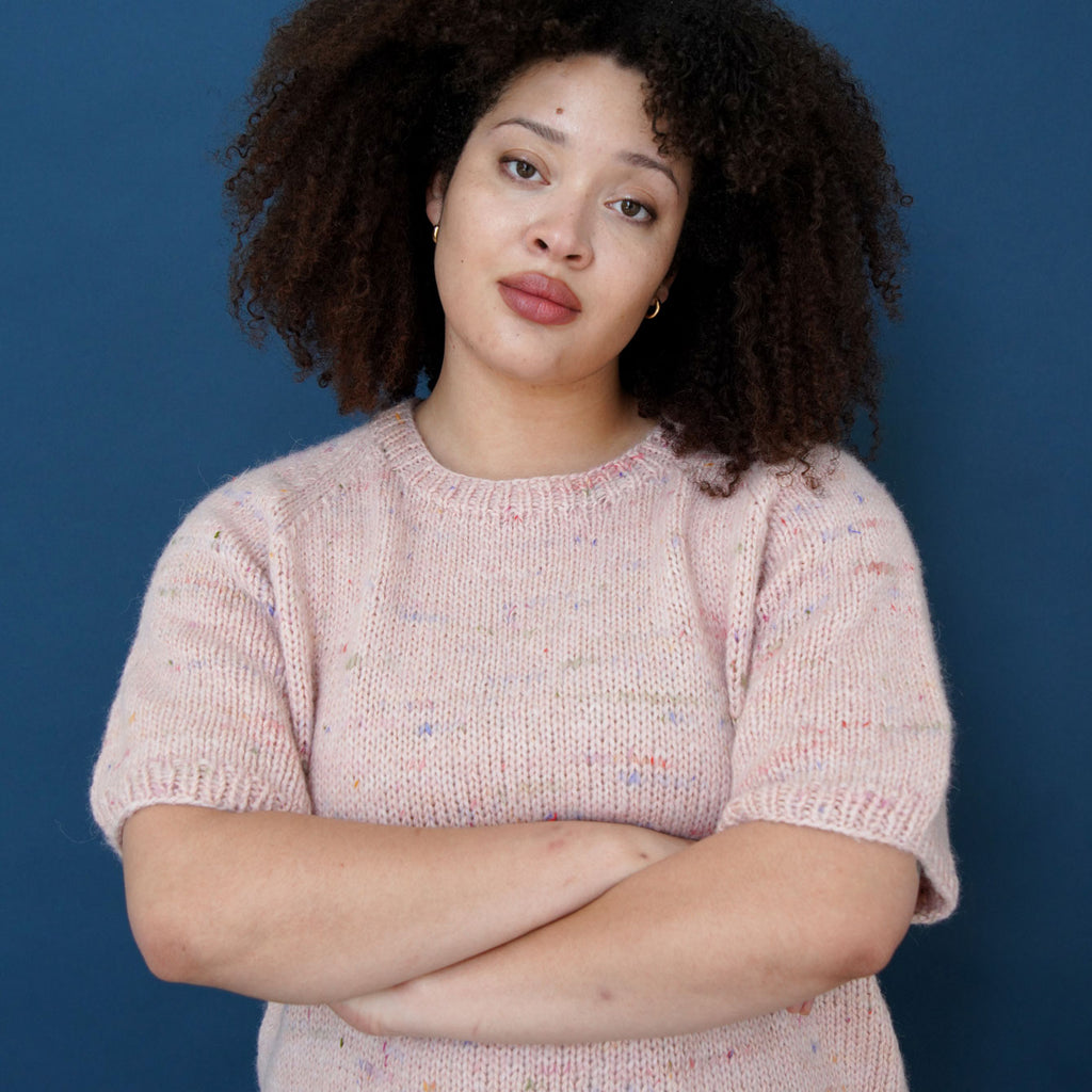 Hamnö T-Shirt har en oversize pasform med korte ærmer og rund hals. T-shirten er både lun og let at have på. Kombinationen af Blow og Alpaca skaber et chunky look krydret med de små farverige detaljer fra Blow-garnets nister.