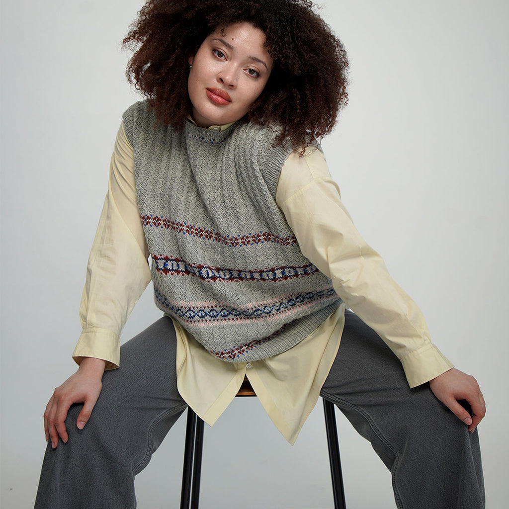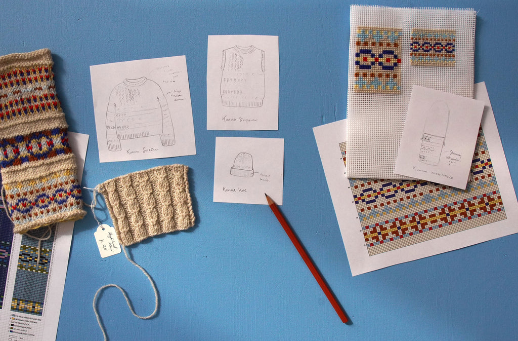 Kunna-designet er både organisk og grafisk – et interessant spil mellem farver og strukturer i forskellige teknikker. Mønsteret kan strikkes i en kombination af flerfarve- og strukturstrik, men også broderes med små korssting. Stylen har nostalgiske undertoner af silhuetter fra 80’erne og mønstre fra 70’erne med et nutidigt udtryk i afstemte farver og variation af garnkvaliteter.