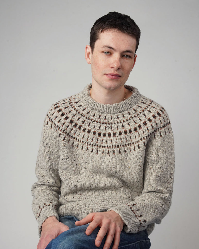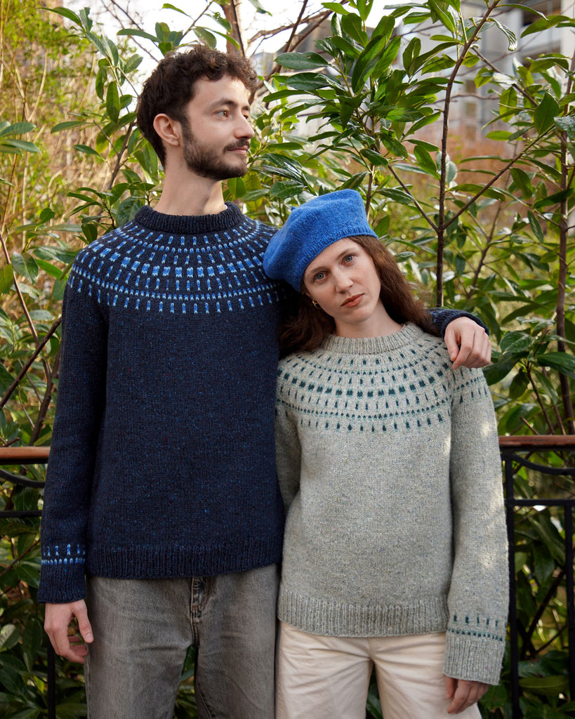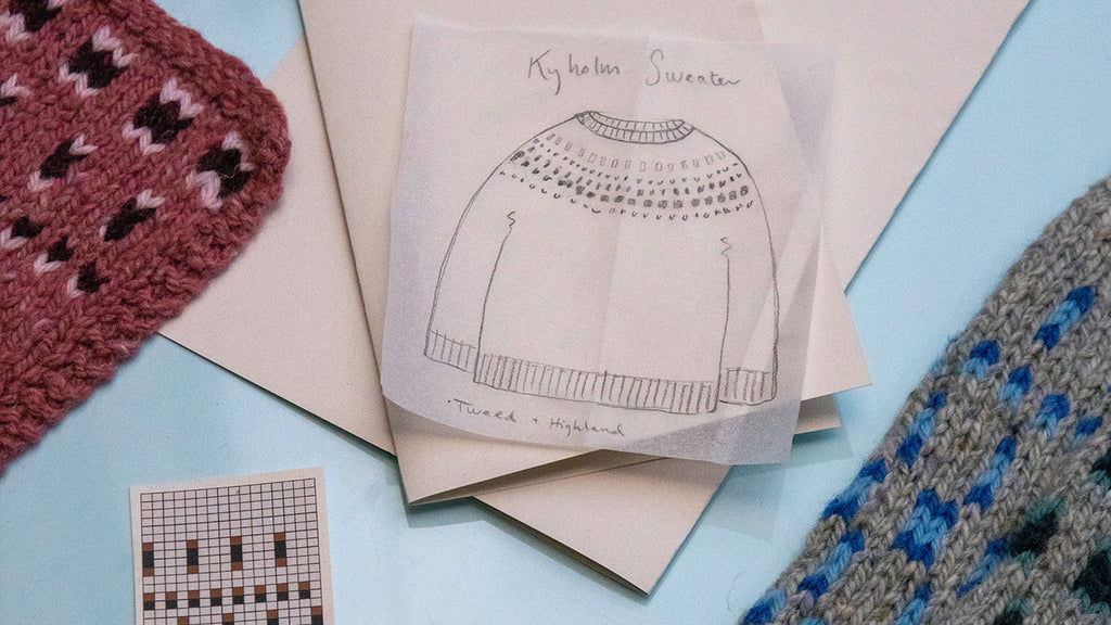Kyholm strikkes i en kombination af vores Tweed og Highland garn.