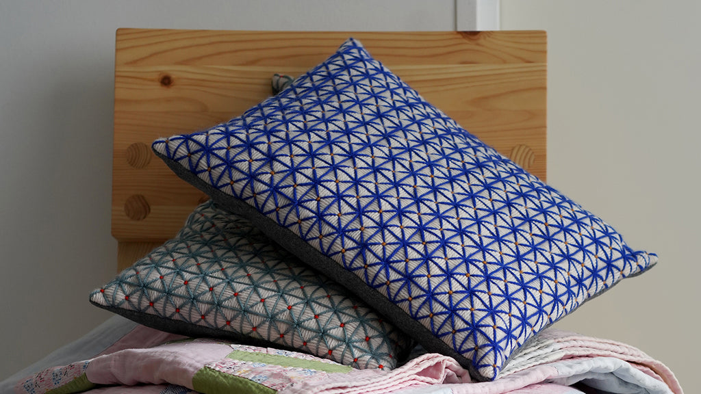 5. Vend retsiden ud, og pres hjørnerne godt ud med en stump genstrand, så bliver de rigtig flotte. Læg til sidst monteringspuden i. Nu er dit broderipude.
