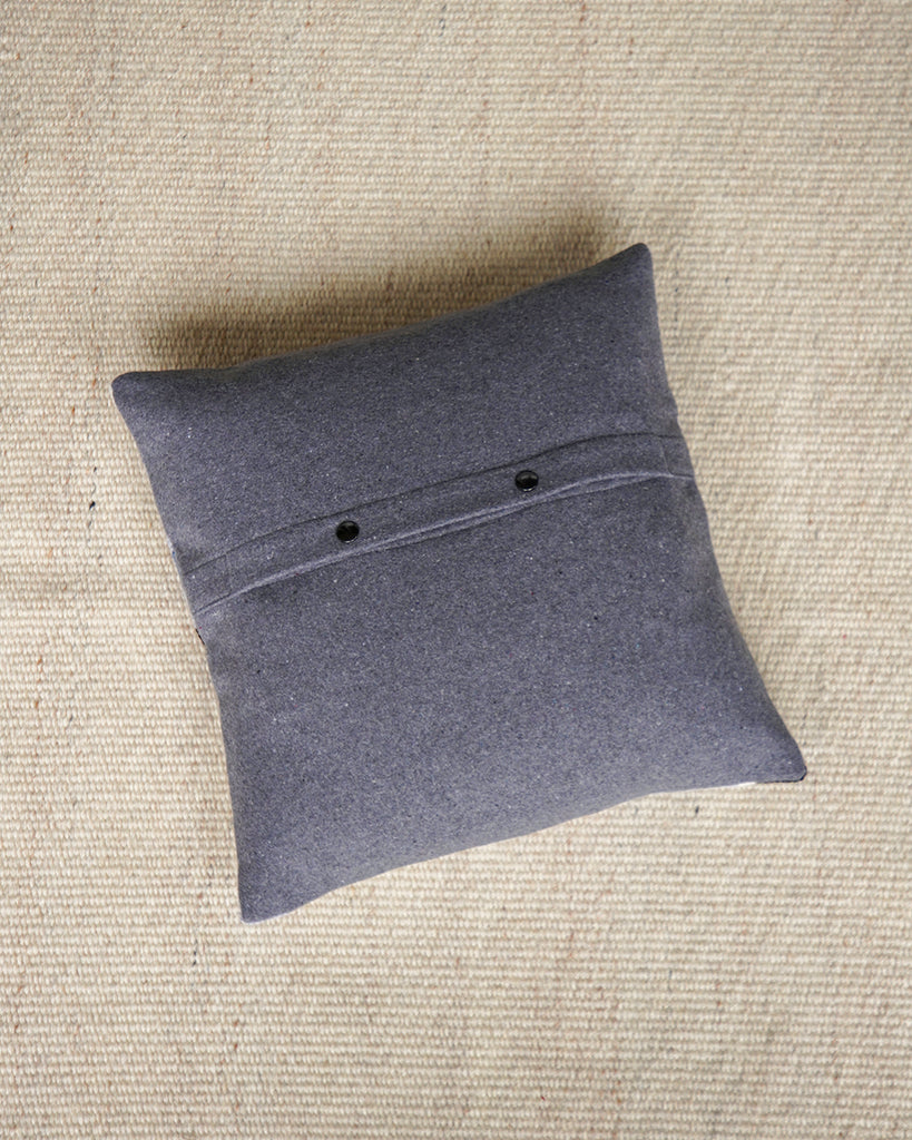 1. Læg broderiet med retsiden opad og læg bagbeklædningen ovenpå så de ligger ret mod ret. Tjek at knapperne på bagbeklædningen er centreret og at der er plads til ca. 1,5 cm sømrum i alle sider. Sæt siderne sammen med klemmer eller knappenåle.