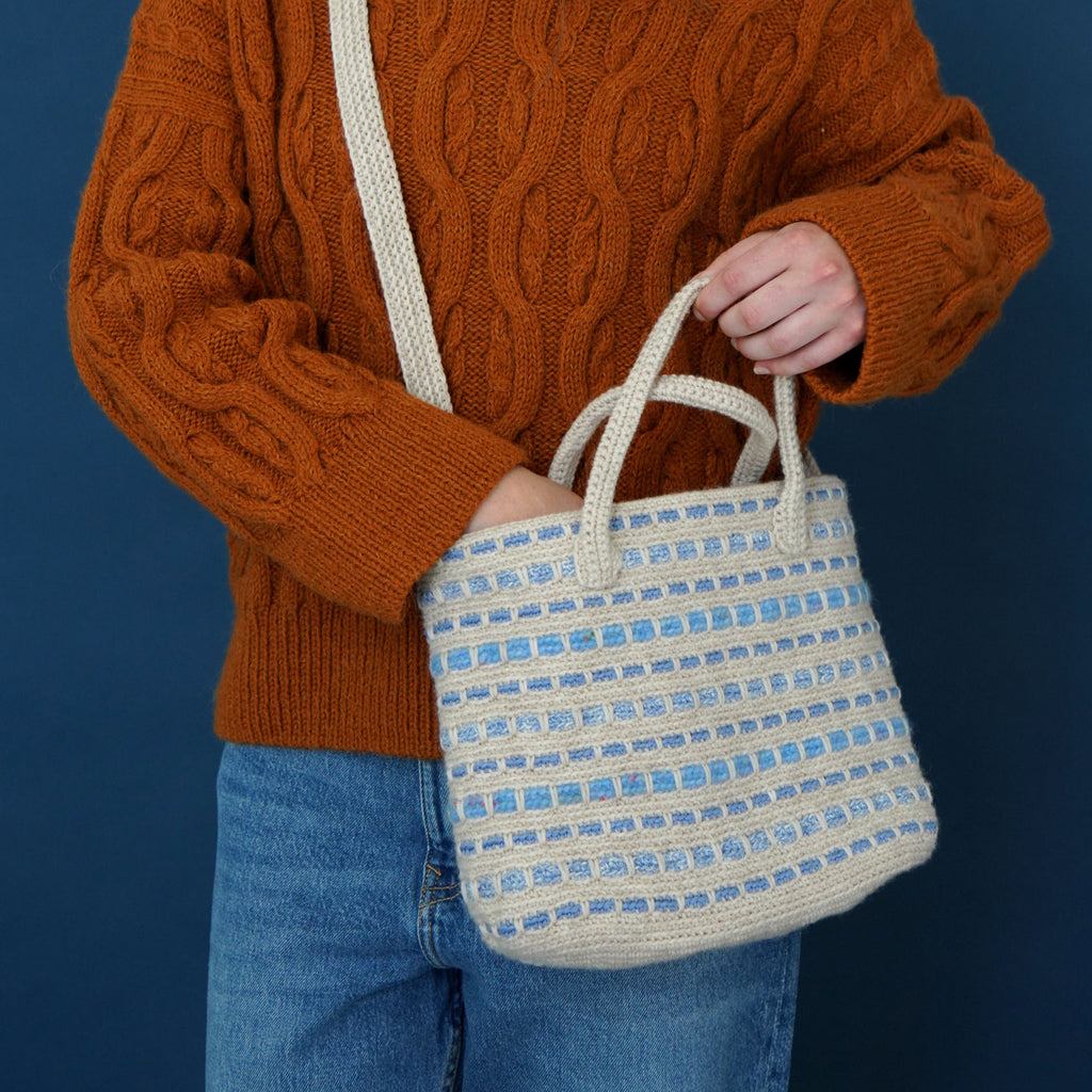 Vi har kombineret forskellige garnkvaliteter, der hver især bidrager med sin egen karakter i kontrast til basisgarnet. Seley er kort sagt en leg med farver og strukturer i et vævet udtryk.