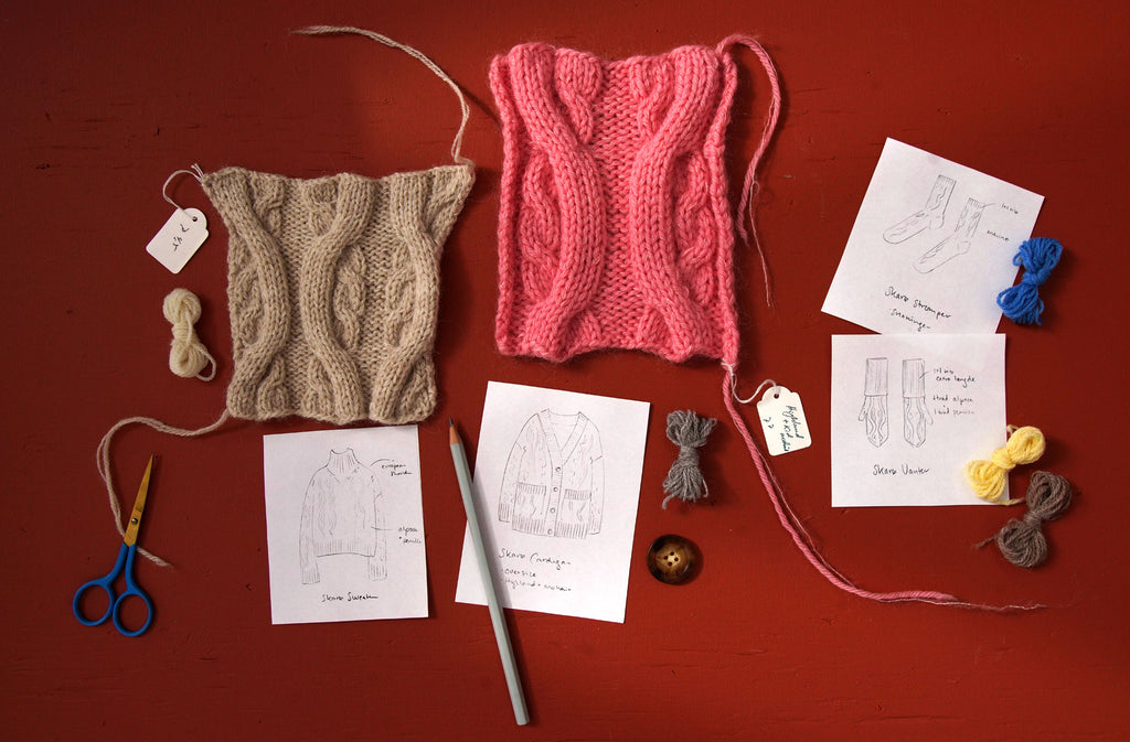 Denne kollektion består af en sweater, en cardigan, et par vanter og et par strømper. Skarø er designet af Kit Coutures faste designteam.