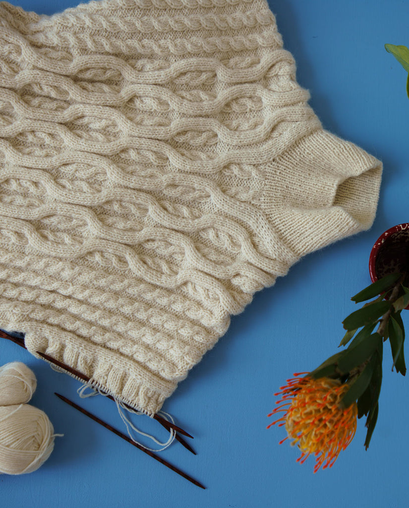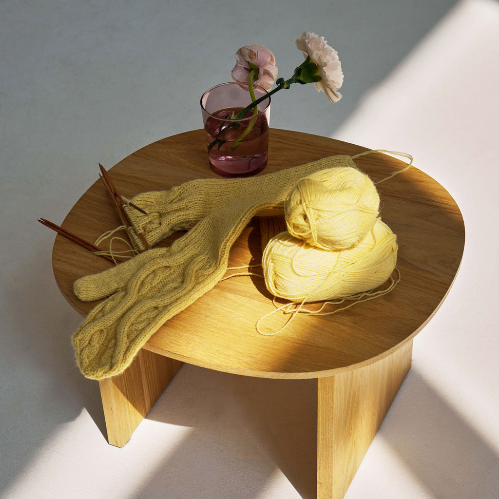 Skarø er et klassisk design i en velkendt teknik med voluminøse snoninger, som skaber en organisk tekstur. Variationen af snoningernes størrelse giver et dynamisk udtryk, hvor man kan blive ved med at finde nye små detaljer i det strikkede.