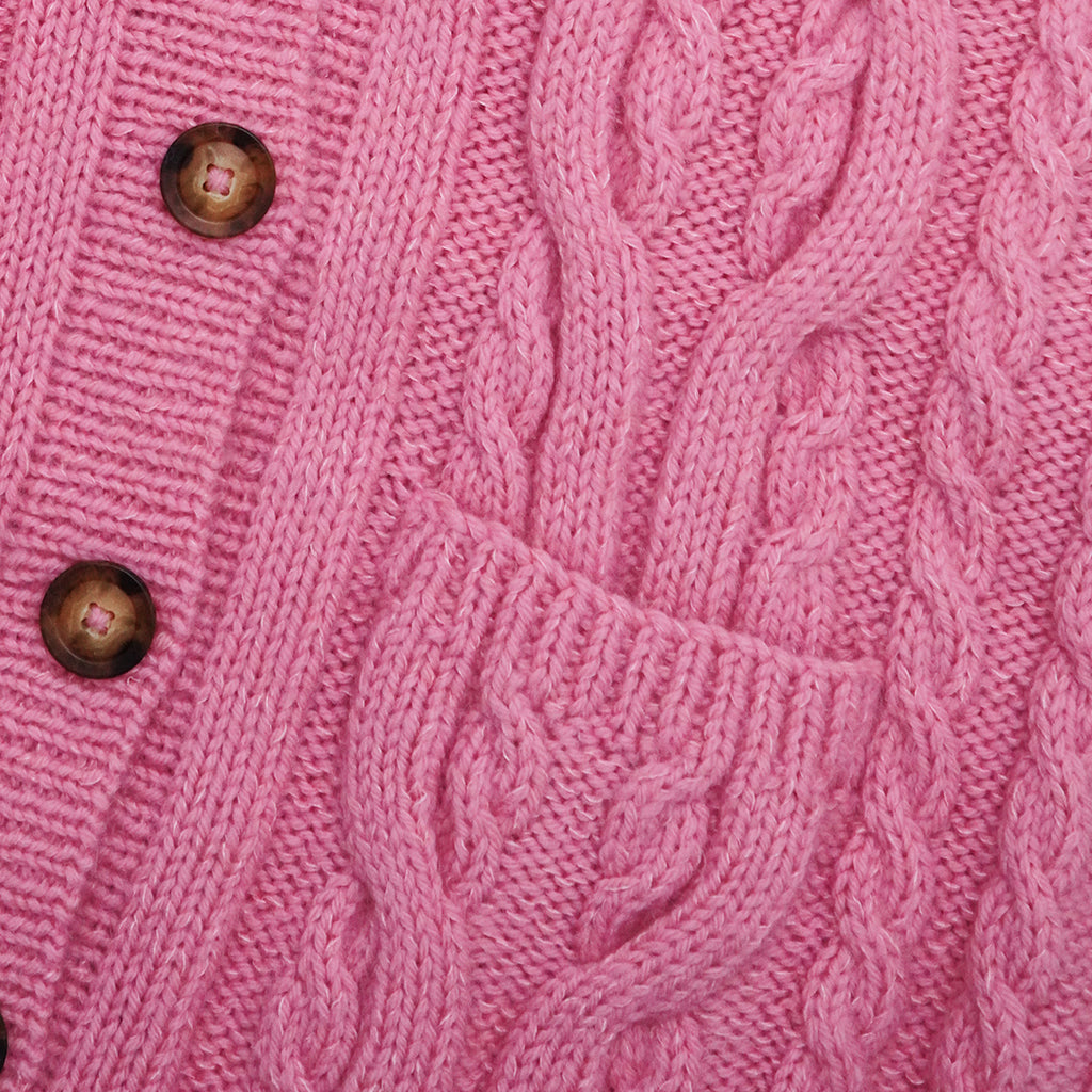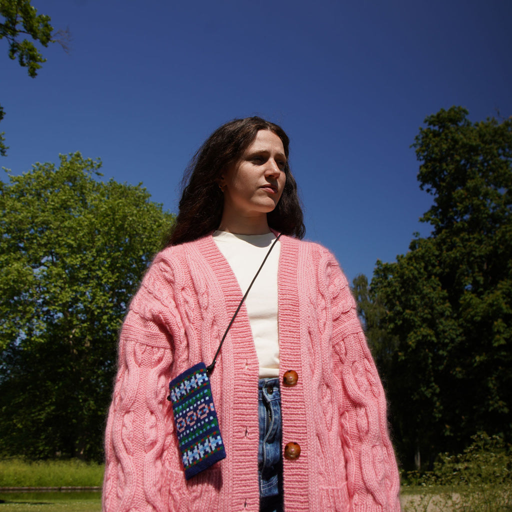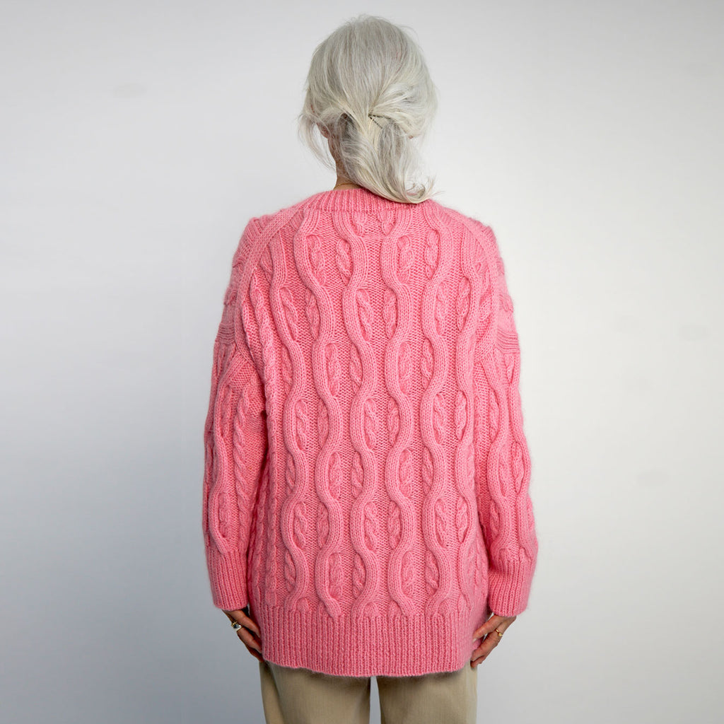 Skarø Cardigan strikkes i et tykt uldgarn med en følgetråd i mohair, så den får en dejlig stor oversize pasform. Udover det klassiske snoningsmønster, har cardiganen fine detaljer i form af European shoulder, italienske aflukninger og lommer.