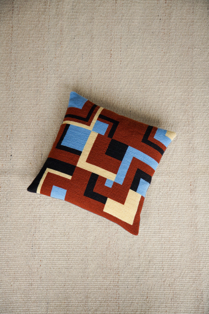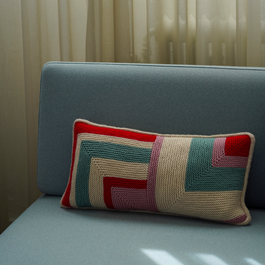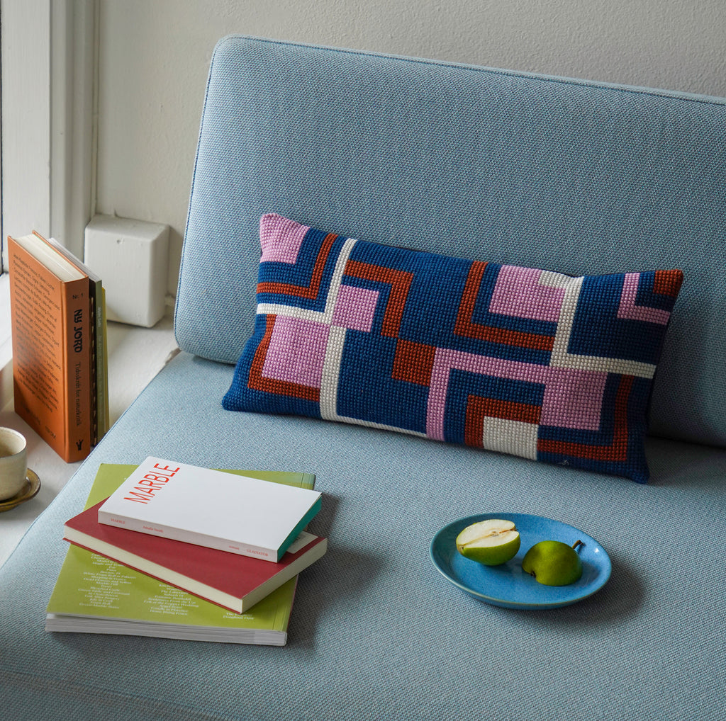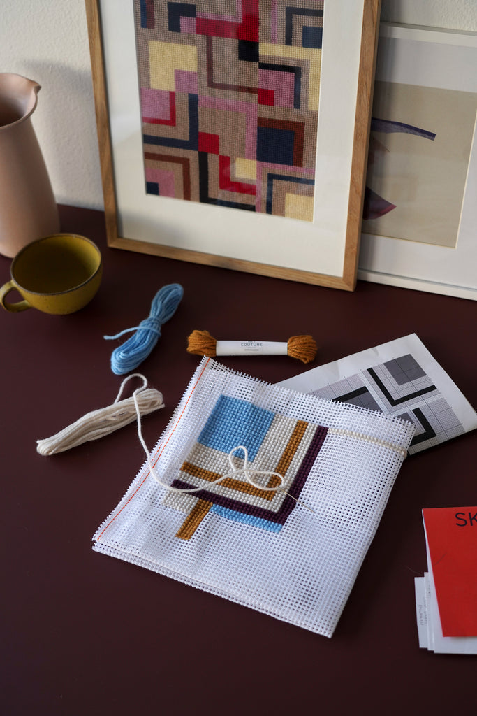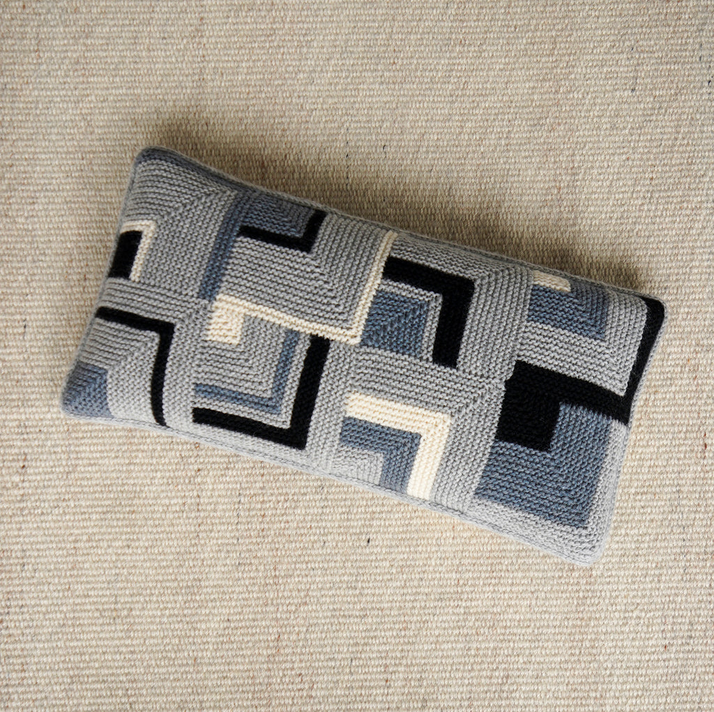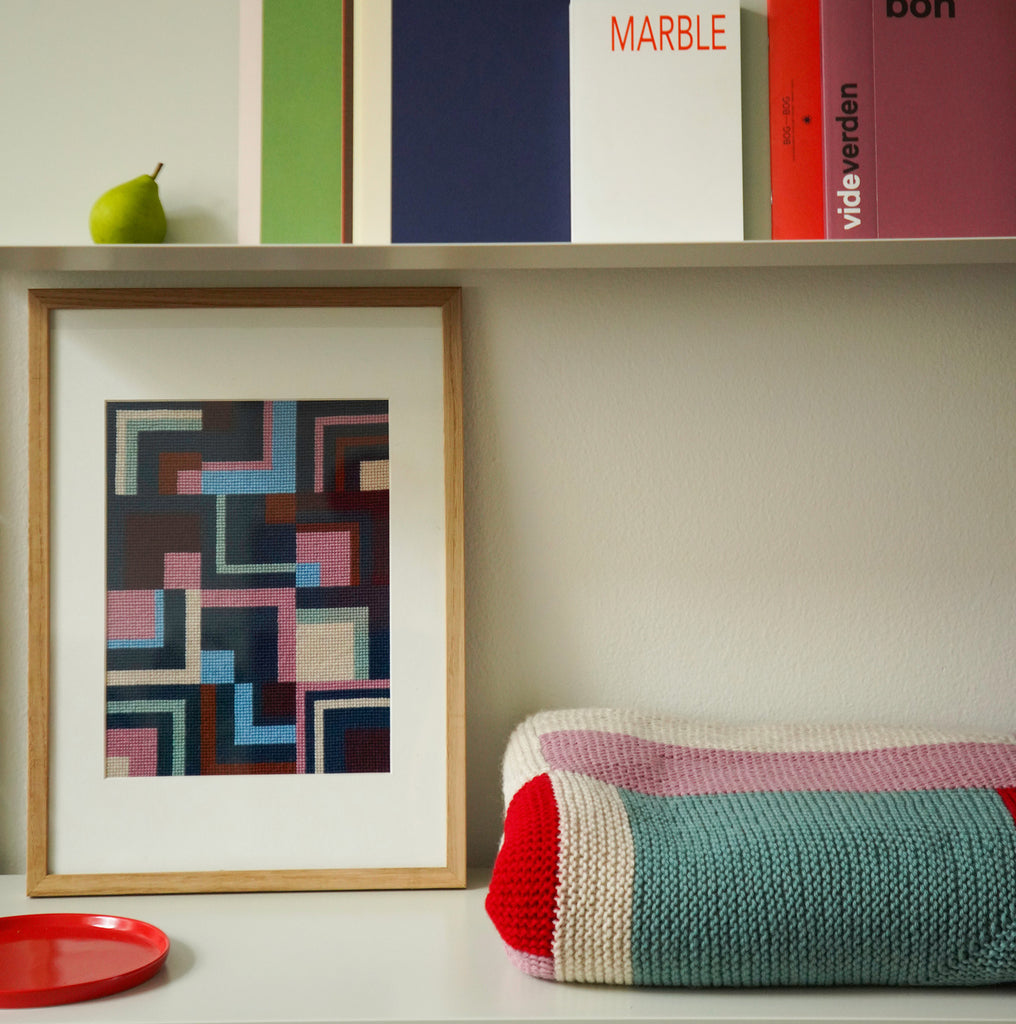 Du kan eksperimentere med farver for at danne spændende geometriske former eller strikke ensfarvede felter for at skabe diagonale linjer. Felterne strikkes i retriller, så alle kan være med!