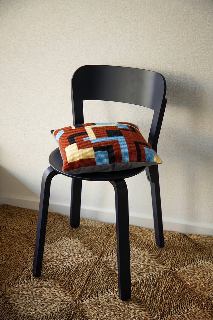 Designet er et mønster med et markant grafisk og geometrisk udtryk, som giver rig mulighed for at lege med farver og skala. Denne teknik hedder i strikkens verden dominostrik.