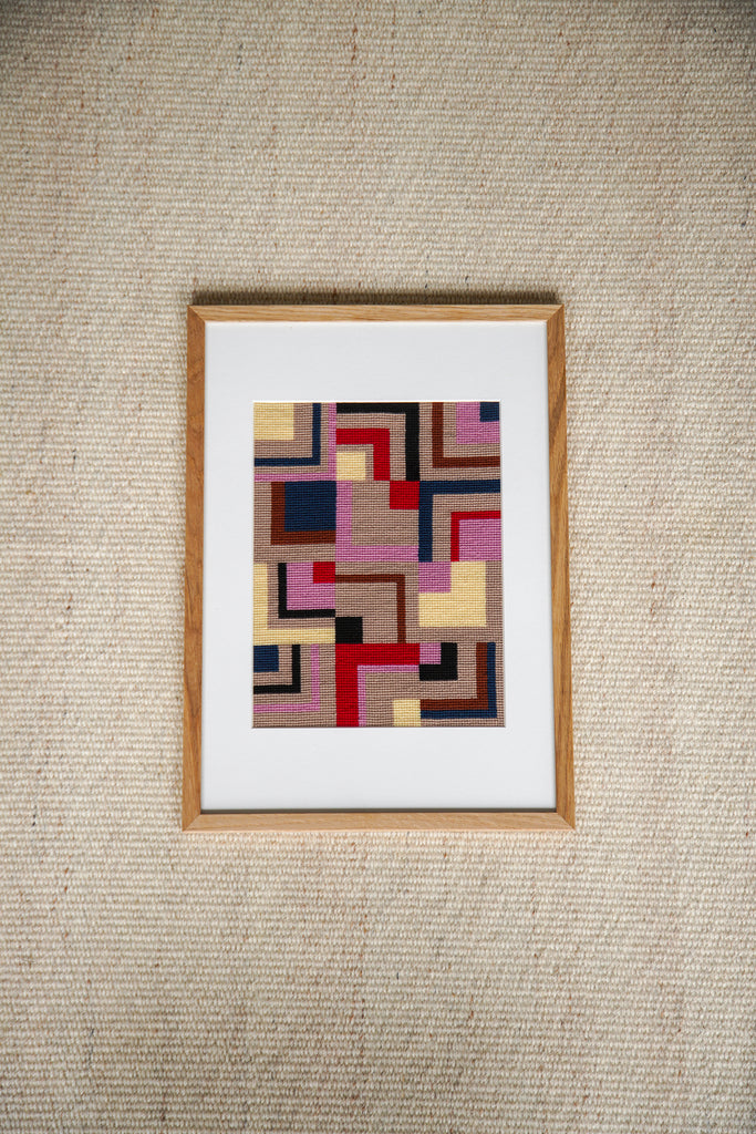 Via denne teknik får designet et modulært system, hvor det dynamiske element er kvadraternes skala samt farvernes bevægelser og forhold til hinanden. Arbejdet formes i takt med, at kvadraterne strikkes i retstrik. Man strikker det næste kvadrat i forlængelse af det første - og sådan fortsætter det.