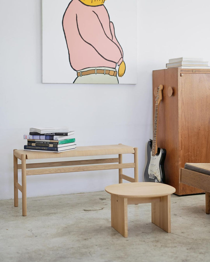 Designet er skabt specielt til Soft Chair og Soft Bench, hvis organiske formsprog og detaljer taler til garnets egenskaber. Den bløde uld, som snor sig og strikkes i masker, møder et organisk materiale træ, hvor der leges med struktur og udtryk.