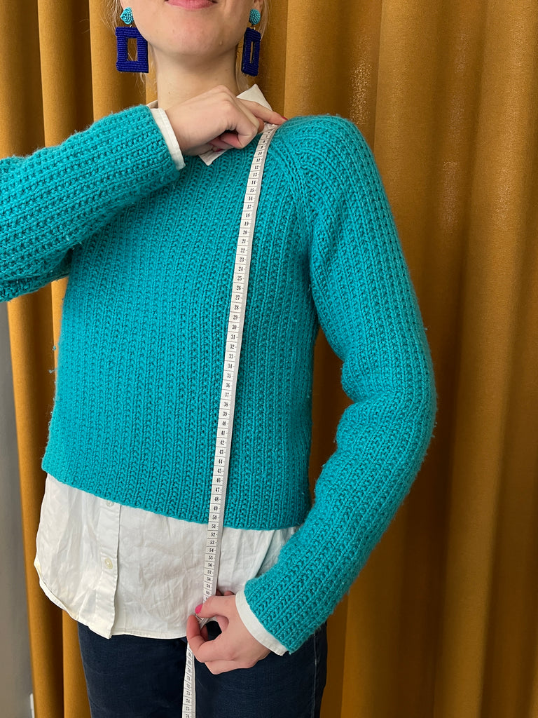 Når du vælger størrelsen på din sweater, skal du først se på modellens overvidde. Alt efter pasformen skal der typisk være mellem 5 og 20 cm i forskel på dit brystmål og din bluses overvidde. Den forskel er din bluses bevægelsesrum.