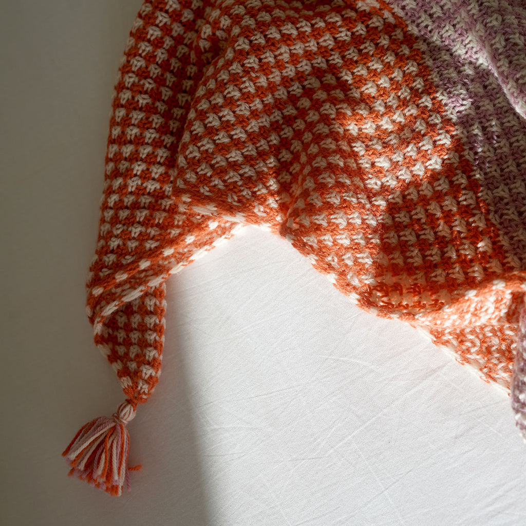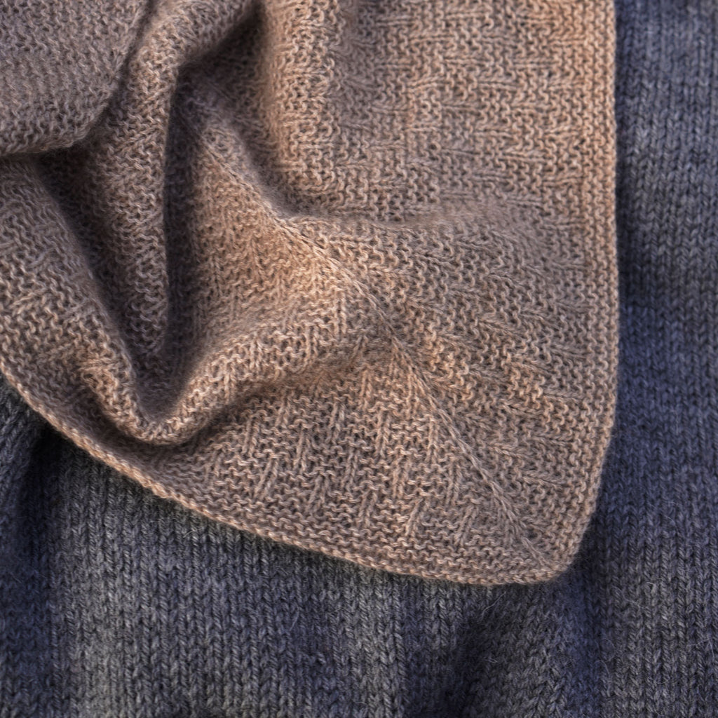 1 ret, slå om pinden, 1 ret, slå om pinden, 1 ret, slå om pinden, 1 ret. Der er nu 7 masker på højre pind.