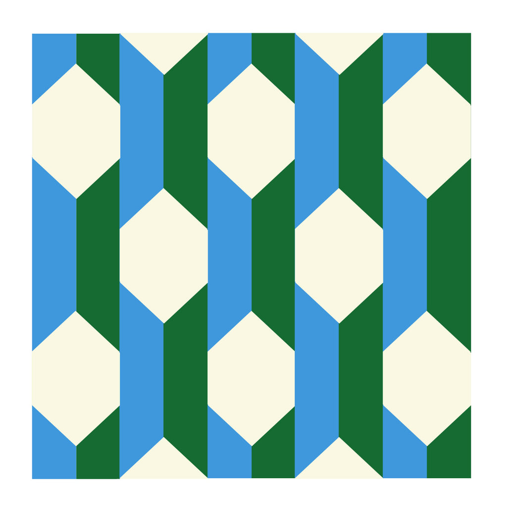 Egholm har et grafisk tredimensionelt mønster i tre matchende farver, som er designet i samarbejde med Sine Stenbek. Puden broderes i vores uldbroderigarn med halve korssting. Stingene broderes i forskellige retninger, hvilket giver en flot vævet effekt.