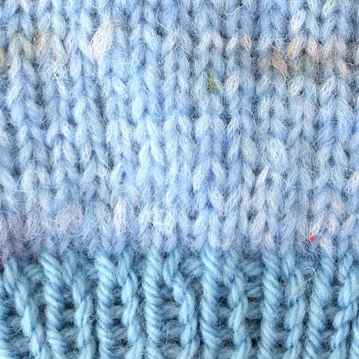 Endelave Blusen er en feminin og meget anvendelig bluse. Krop og ærmer strikkes i det bløde, tweed-lignende Blow garn med smukke nister, og alle ribkanter strikkes i Highland garn.