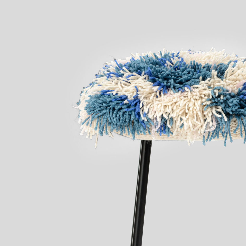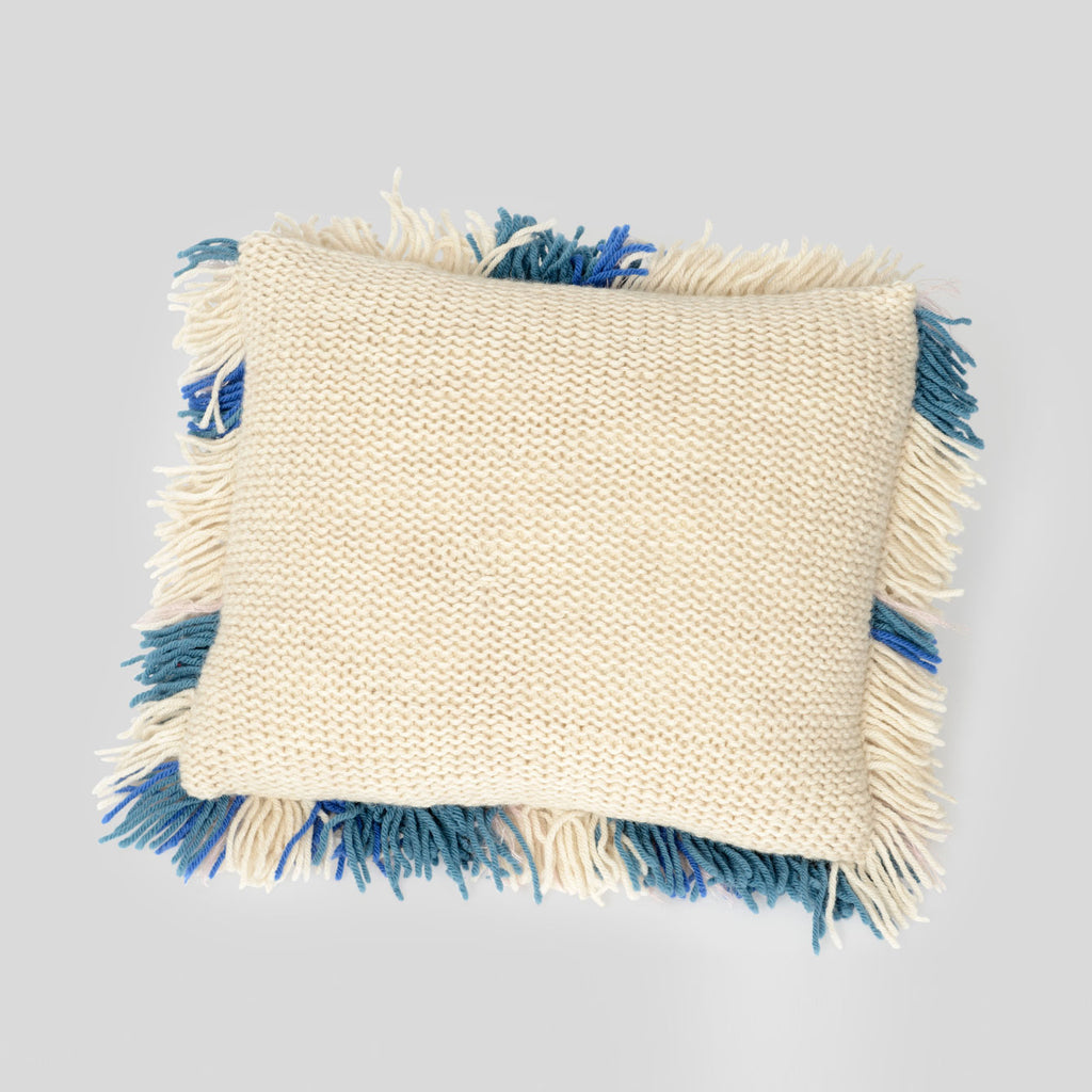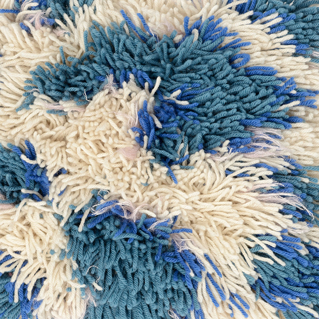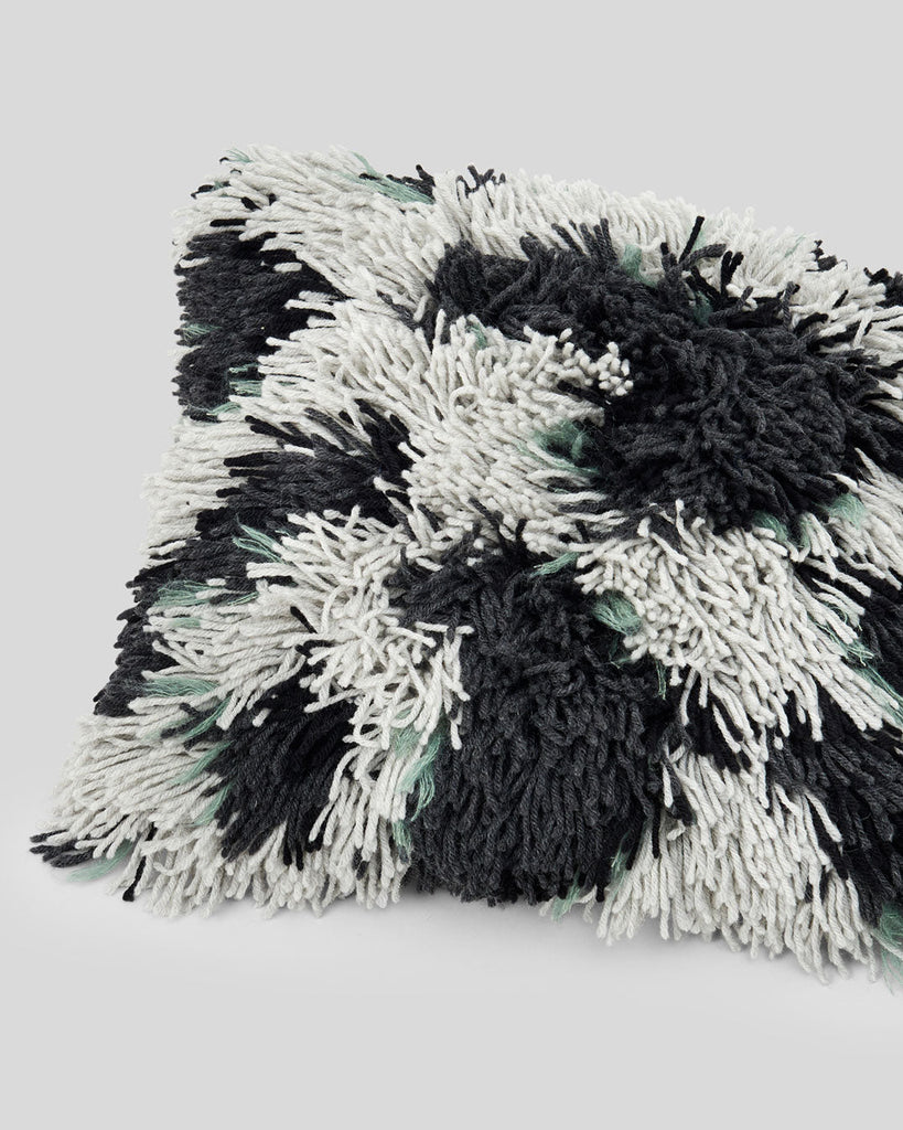 Femø er inspireret af den klassiske teknik rya. Rya er en teknik, hvor garnet klippes i baner og bindes på den strikkede pude. Rya giver et levende og vildt udtryk med sine lange tråde i de to slags garner; Highland og Kid Mohair. Femø designet er skabt af Lærke Bagger.