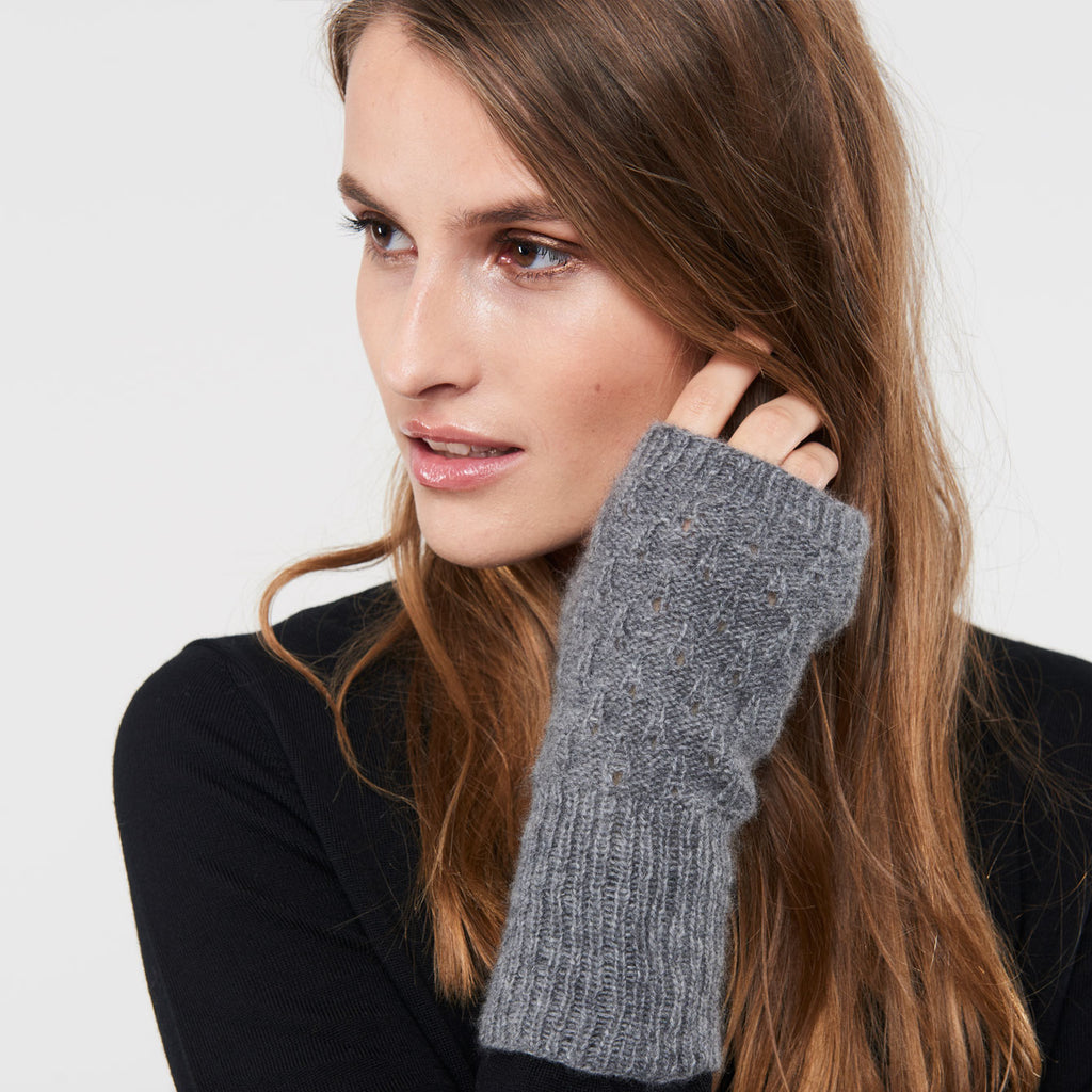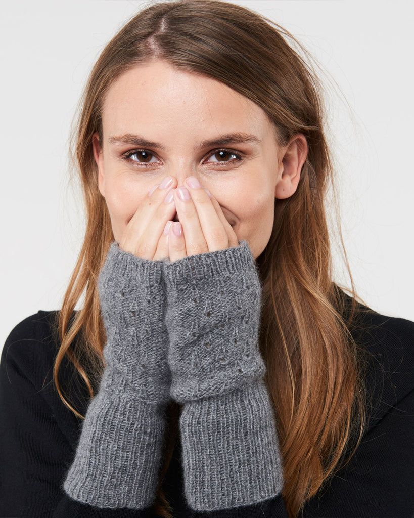 Fugloy-mønsteret er inspireret af Færøernes regndråbefyldte tågedis. Dråberne strikkes tæt på forsiden af halvvanterne. Fugloy Halvvanter strikkes i vores 100% Cashmere garn, som er et uendelig blødt og let garn. Den strikkede cashmere smyger sig mod huden - og bliver meget hurtigt vanedannende.