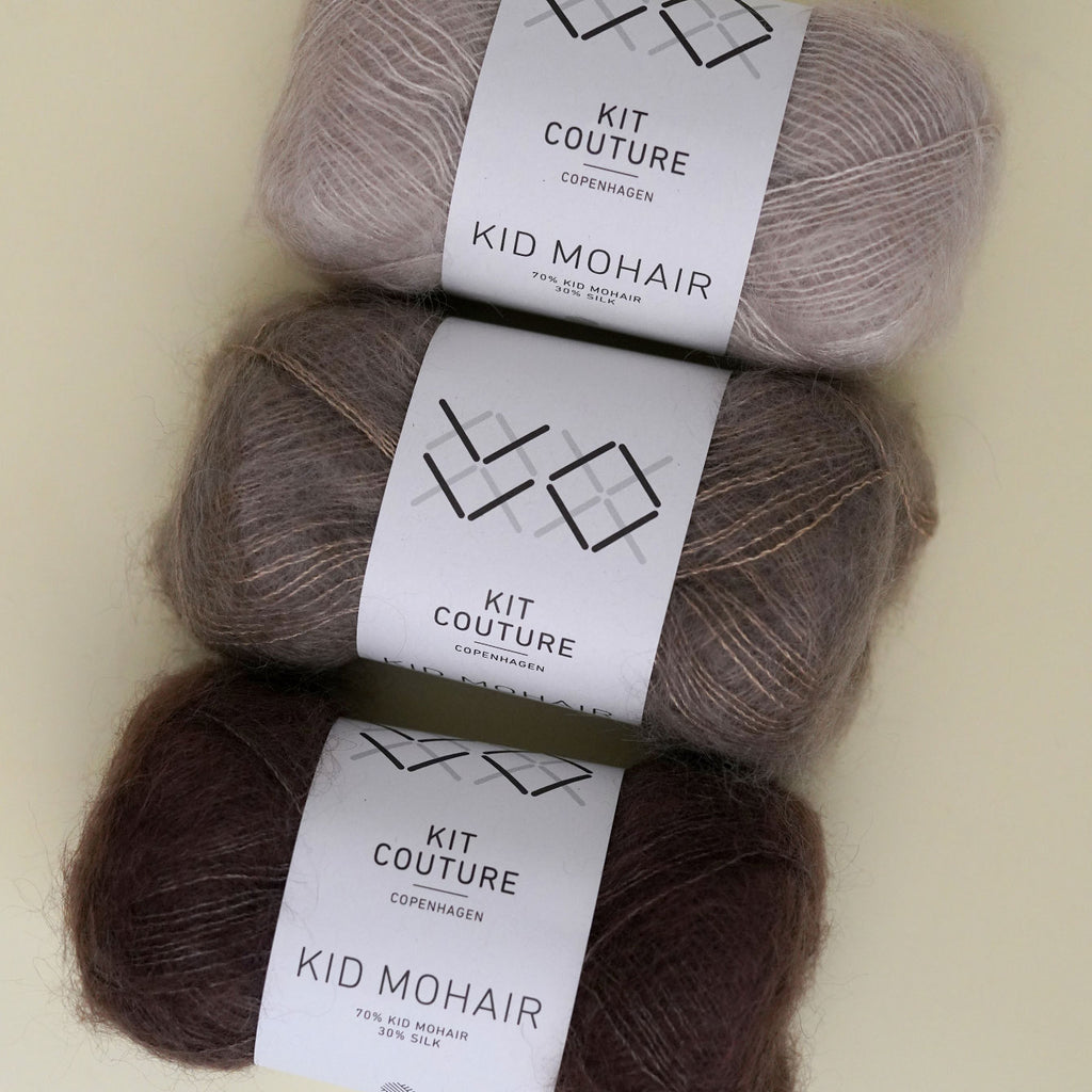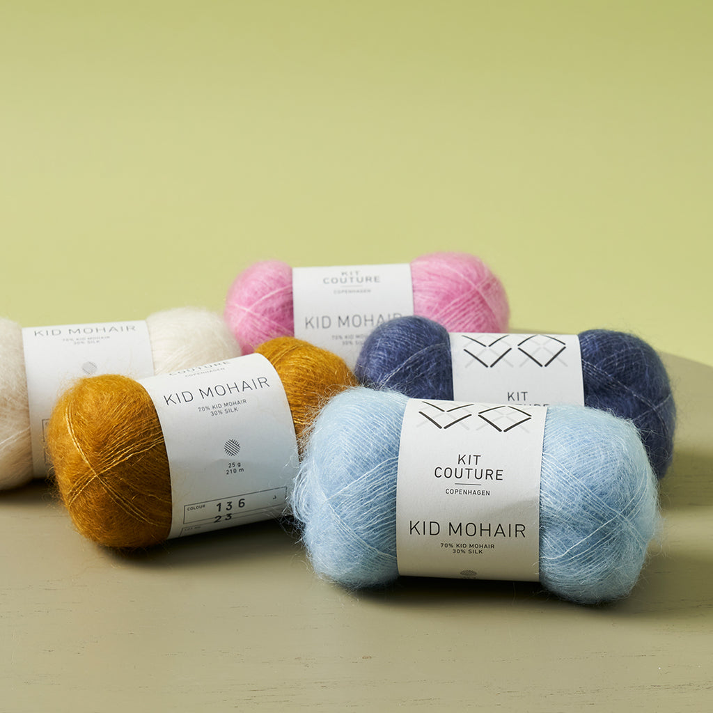 Kid Mohair er et let, fint garn, der fremstår eksklusivt med sin blanke og bløde overflade. Kombinationen af kid mohair fibrene og silken sikrer samtidig, at det er lunt garn. Kid Mohair kommer fra angorageden, som lever i Tyrkiet. Da garnet er løst spundet, er det dejlig blødt, men kan fnugge lidt i starten.
