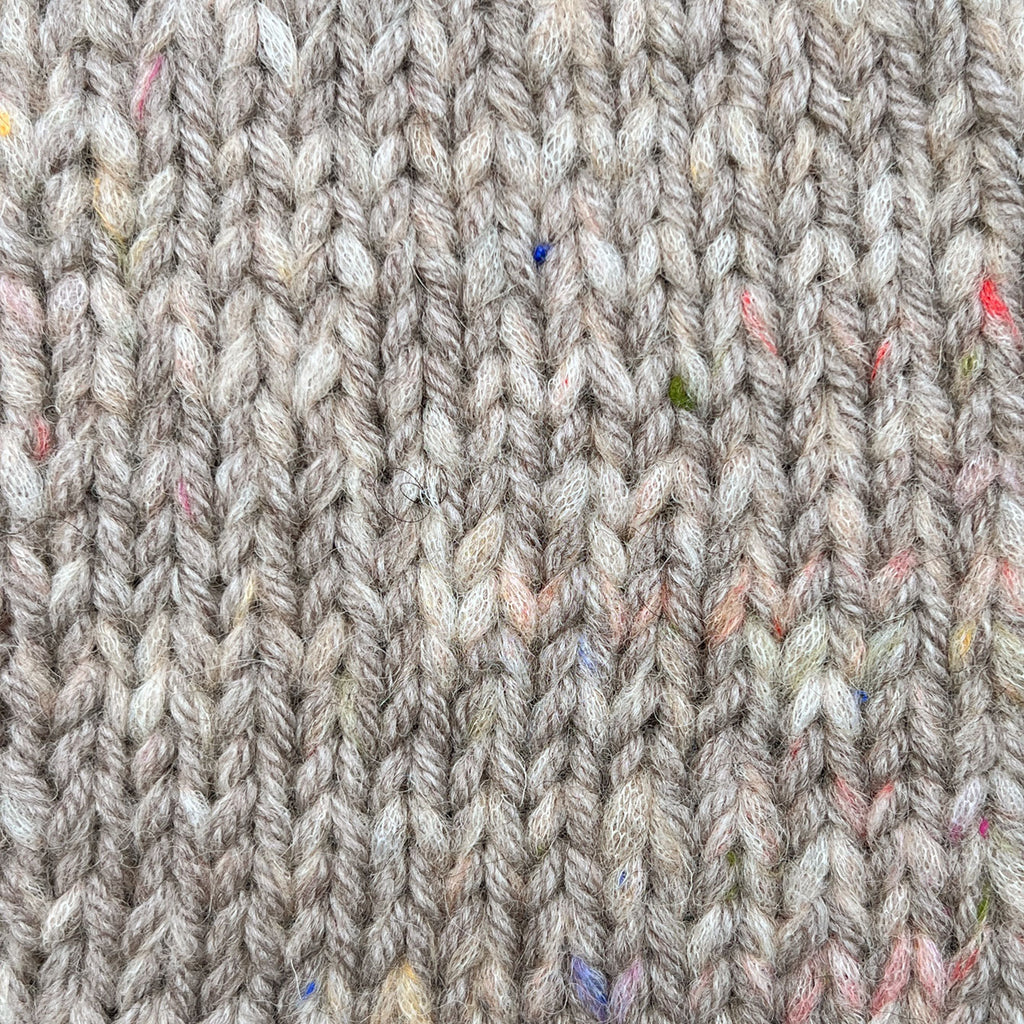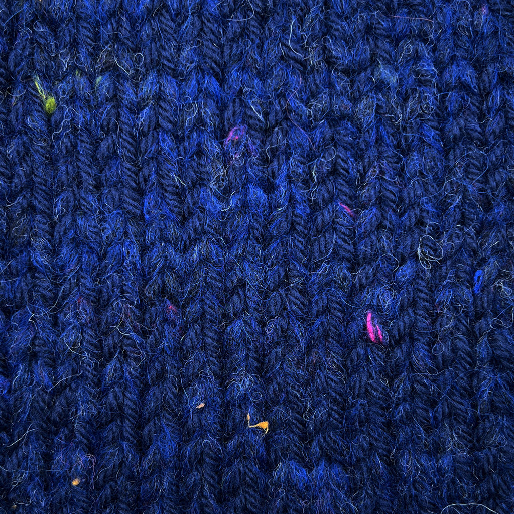 Tussaaq Hue strikkes med én tråd Highland sammen med én tråd Blow garn på tykke pinde, og du kommer igennem teknikkerne rib-strik, ret-strik og indtagninger.