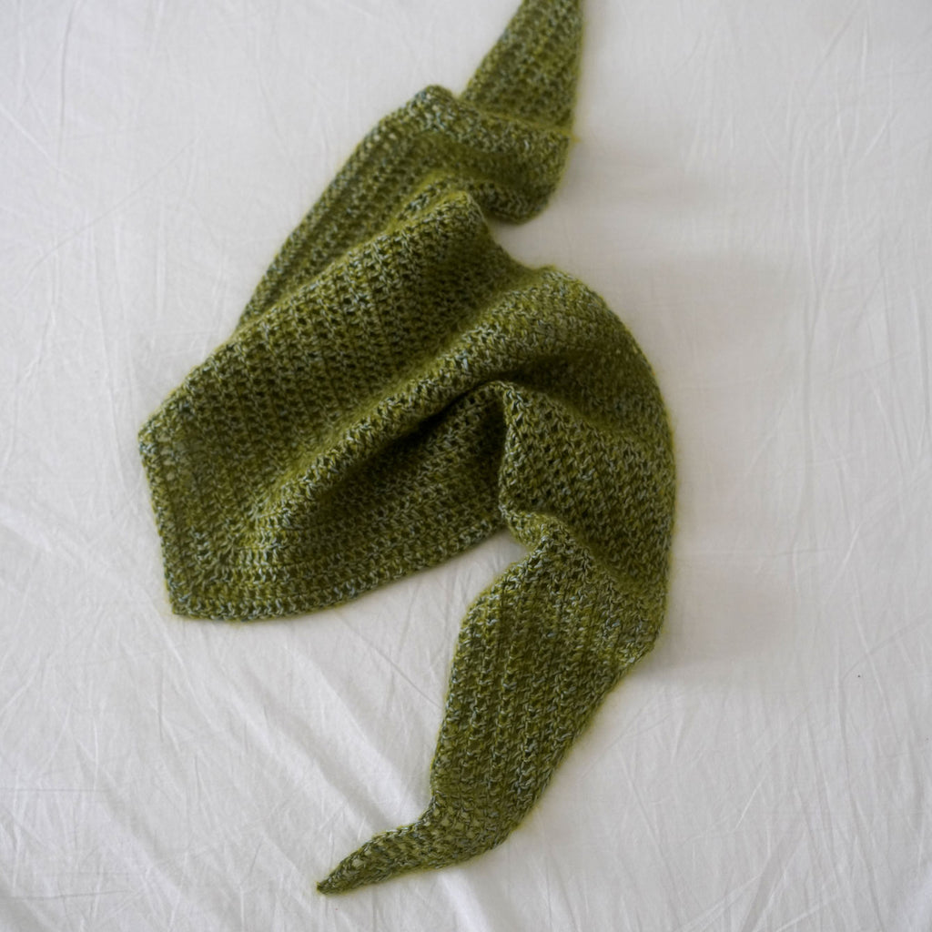Tørklædet har en meget anvendelig størrelse. Det hækles i et mix af Silk Linen og Kid Mohair, så det er den rene luksusoplevelse at have på!