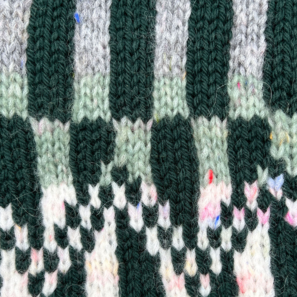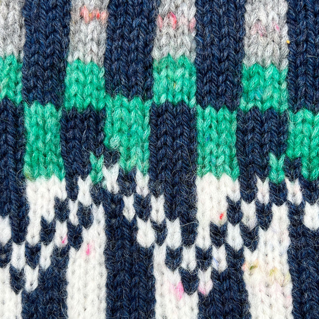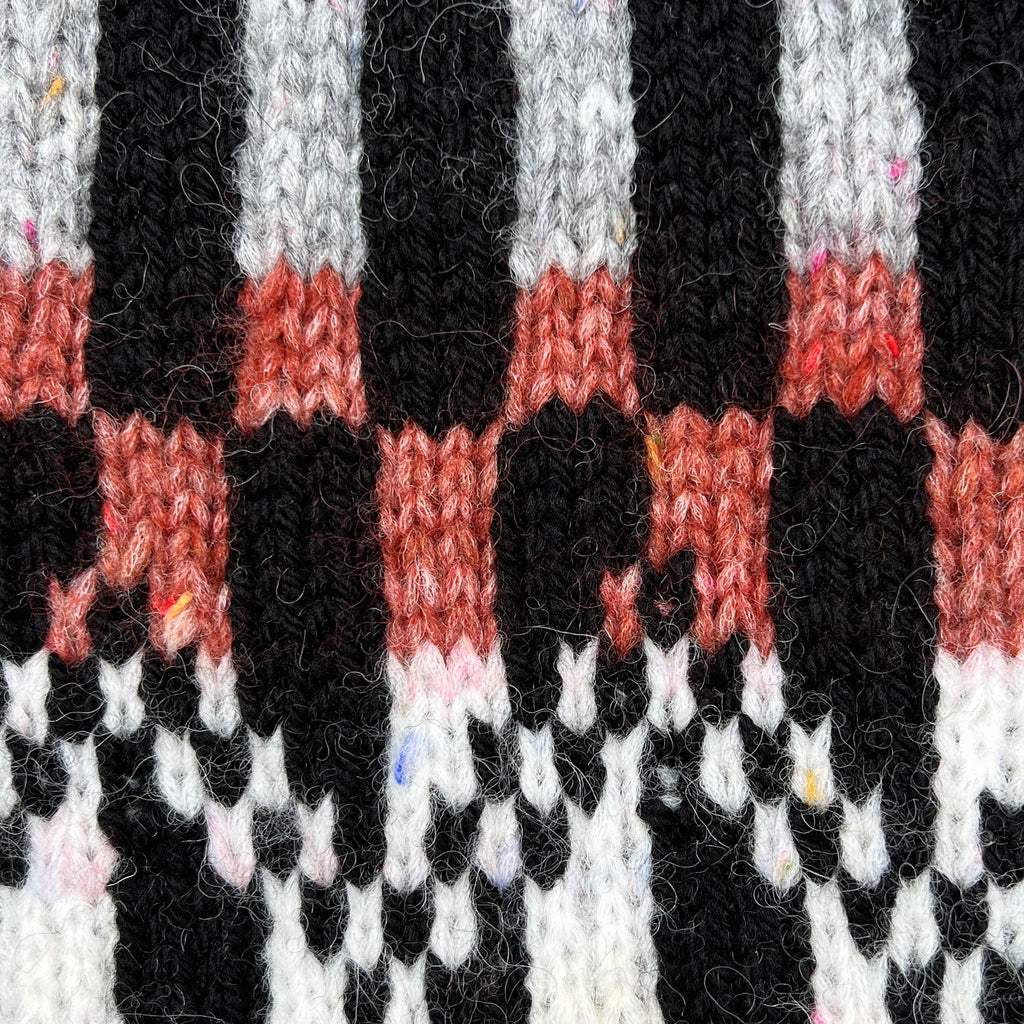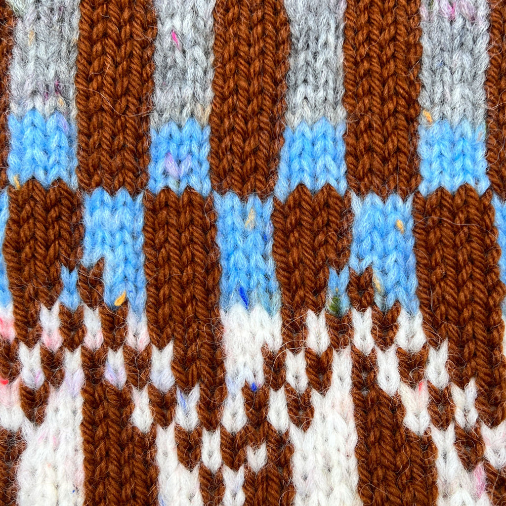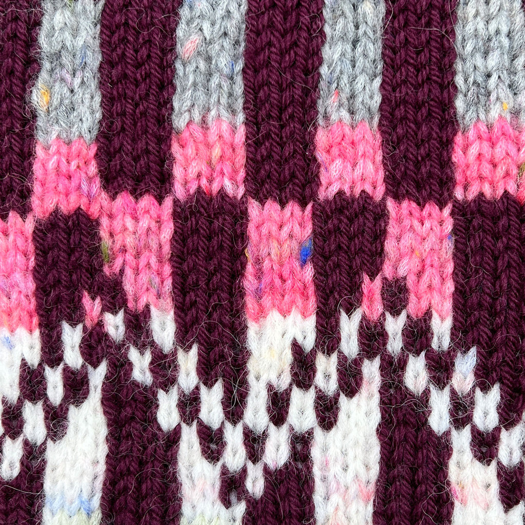 Disko Pude har et stramt grafisk mønster, som strikkes i to garnkvaliteter – Blow og Highland. Det lette Blow garn er med til at give et legende udtryk med de farverige nister og den lodne tekstur. Puden strikkes i flerfarvestrik med fire skiftende farver, som matcher hinanden, og giver et smukt farvespil.