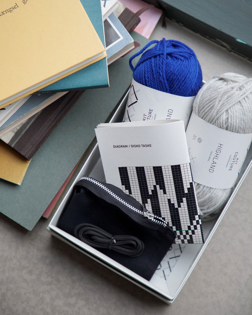 Disko Taske er et oplagt projekt, hvis du gerne vil lære at strikke flerfarvestrik. Der er naturligvis videoguides i opskriften, så du kommer sikkert i mål. Tasken strikkes i flerfarvestrik med to skiftende farver, som matcher hinanden, og giver et smukt farvespil. Tasken monteres med en rem, som du knytter – og med et fór, som naturligvis følger med i kittet.