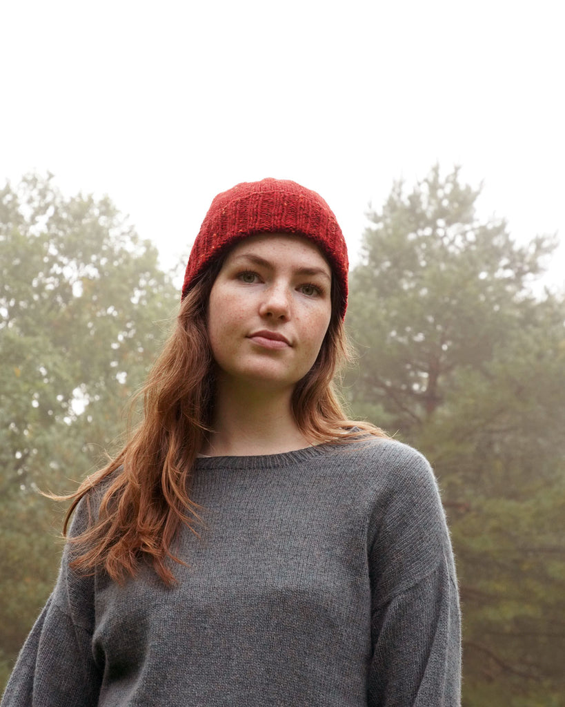 Langø Hue er en god basis-hue, som er let at strikke - og dermed ideel, hvis du er begynder. Huen er designet med en velsiddende, klassisk pasform, så den passer godt til både kvinder og mænd. Langø Hue strikkes i vores bløde Tweed i 100% merinould.