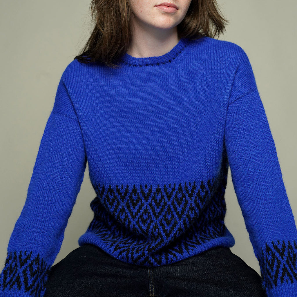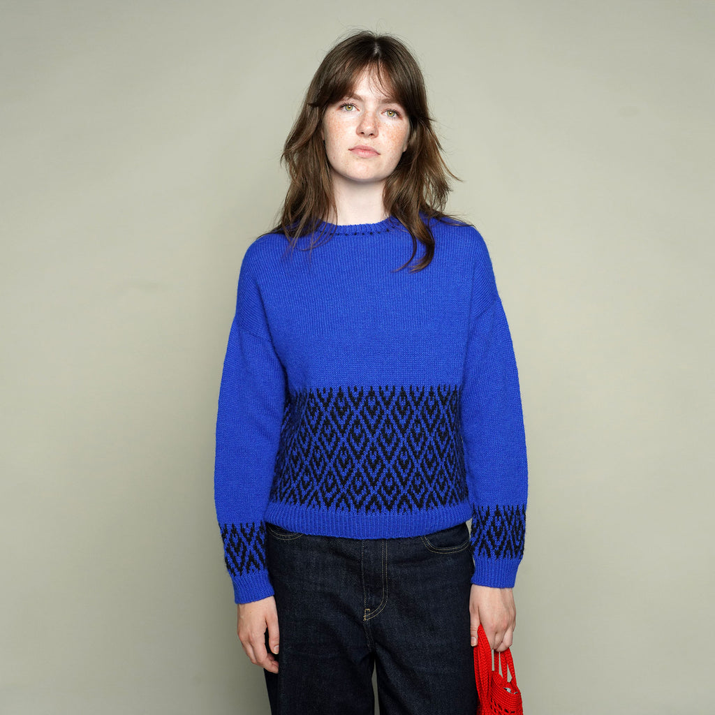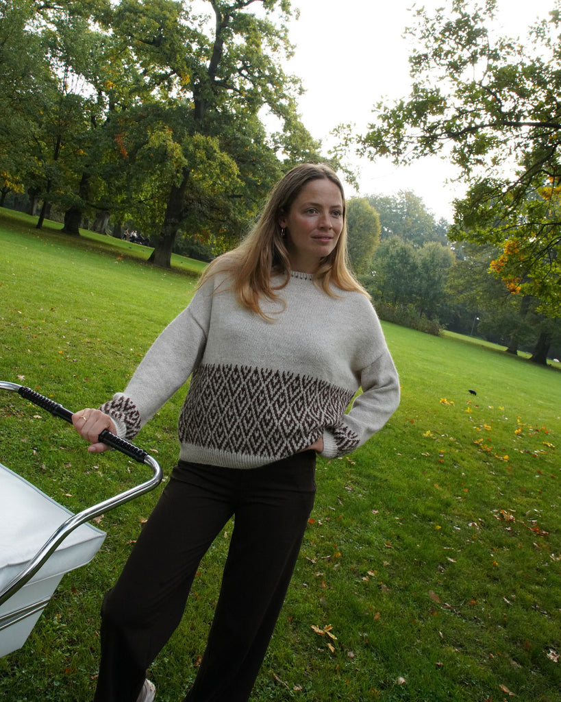 Vanna Bluse har det karakteristiske mønster på den nederste del af kroppen og ærmer samt en fin lille bort i halsen. Blusen har en god pasform, som særligt fremhæver skuldrene. Vanna Bluse strikkes i det lærke Alpaca garn, som er blødt at have på - og giver en smuk silkeagtig overflade.