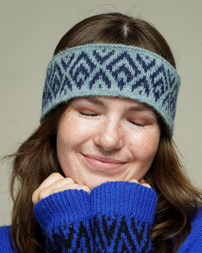 Vanna Pandebånd er designet med det fine, grafiske karakteristiske flerfarvemønster. Vanna Pandebånd strikkes i det lærke Alpaca garn, som er blødt at have på - og giver en smuk silkeagtig overflade.