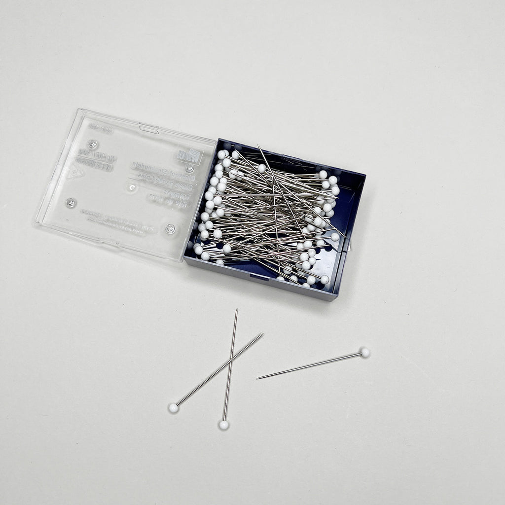 Lækre knappenåle er et uundværligt redskab, når du skal montere dit håndarbejde. Vores knappenåle har hvide glashoveder, så de er lette at se - og enkle at bruge. Æsken indeholder 30 gram med cirka 48 stk. knappenåle.