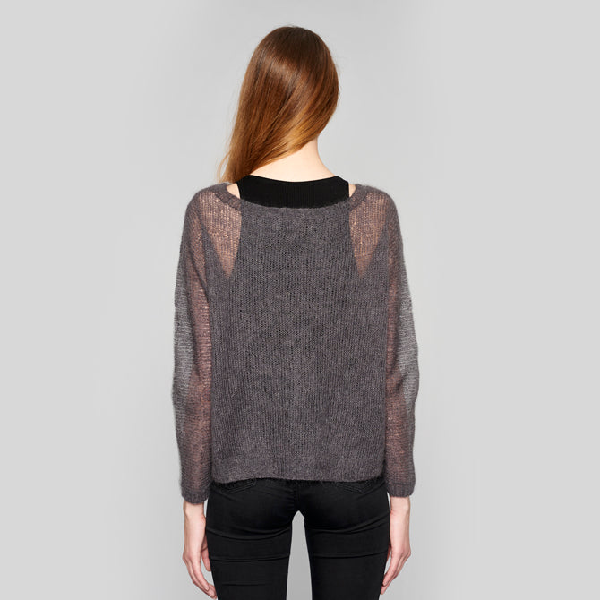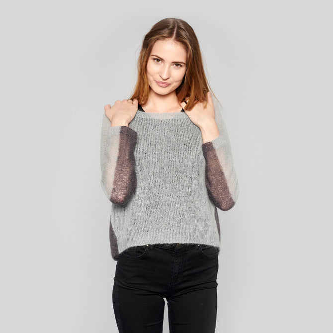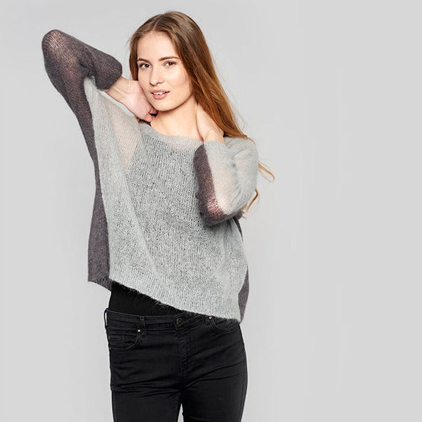Koster strikkes i den fnuglette Kid Mohair, som et et luksuiøst garn, der falder smukt og er let at have på.