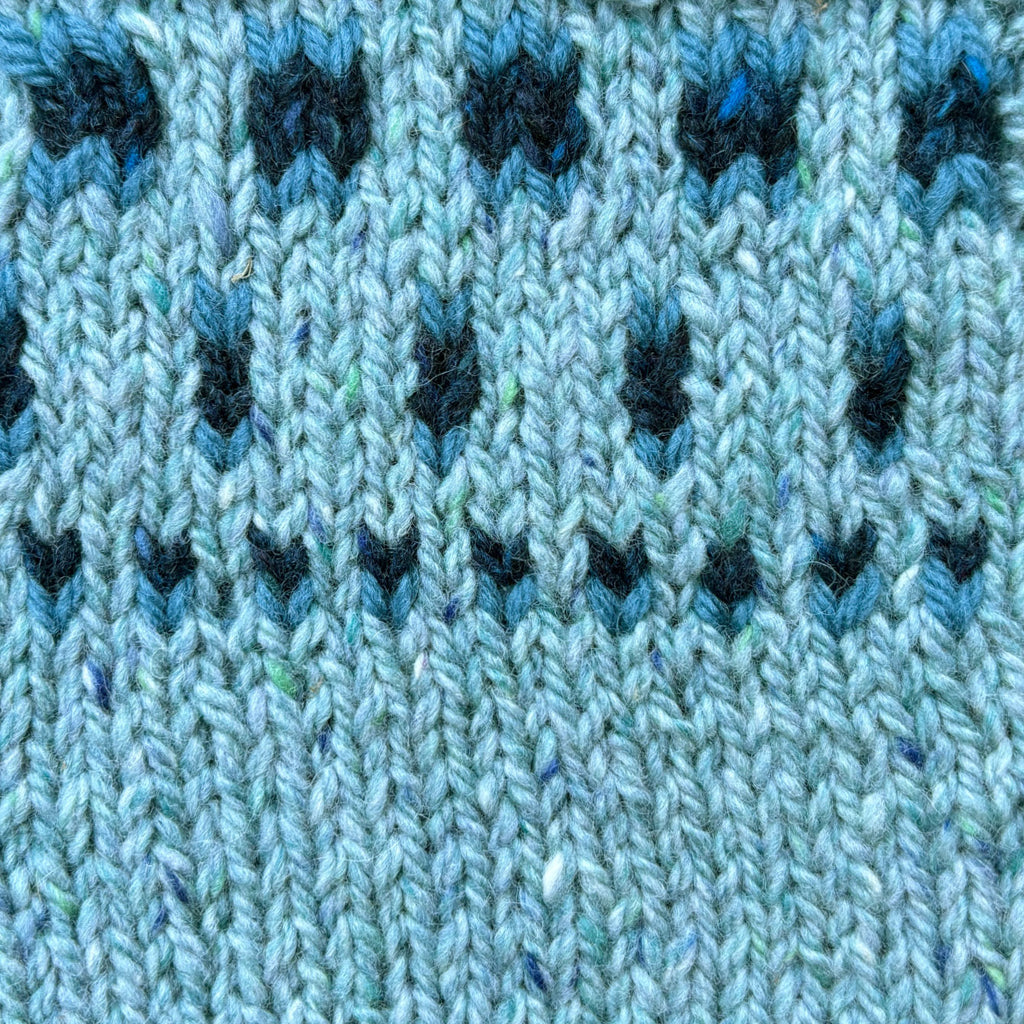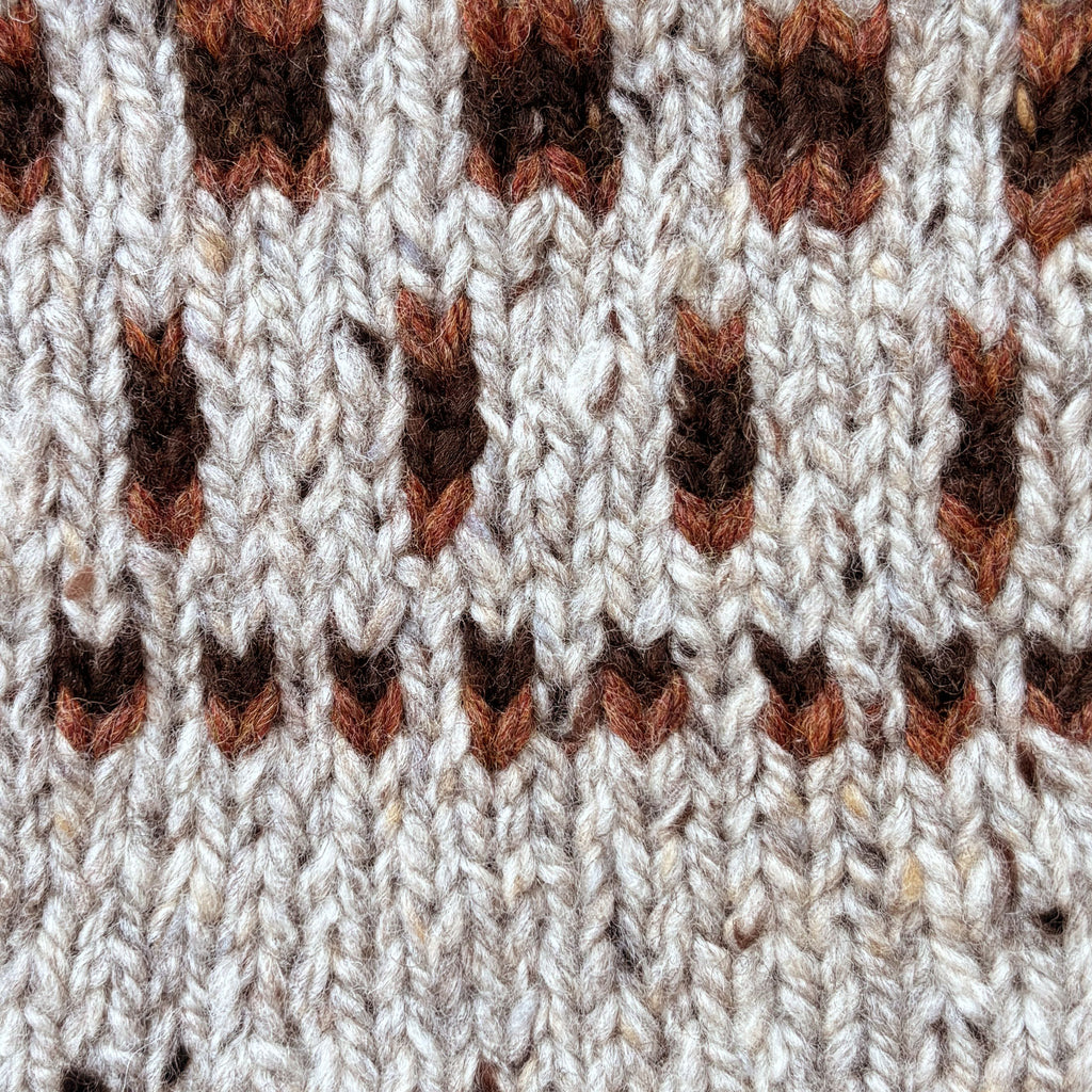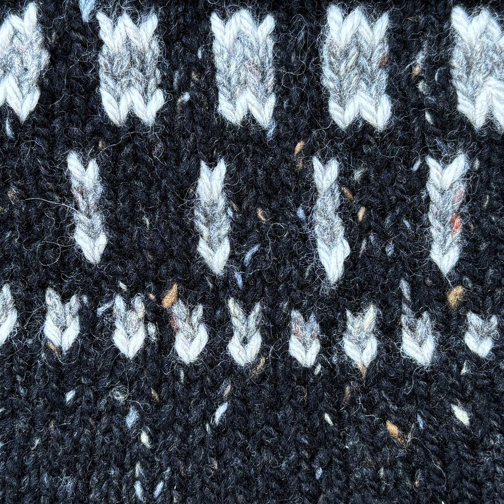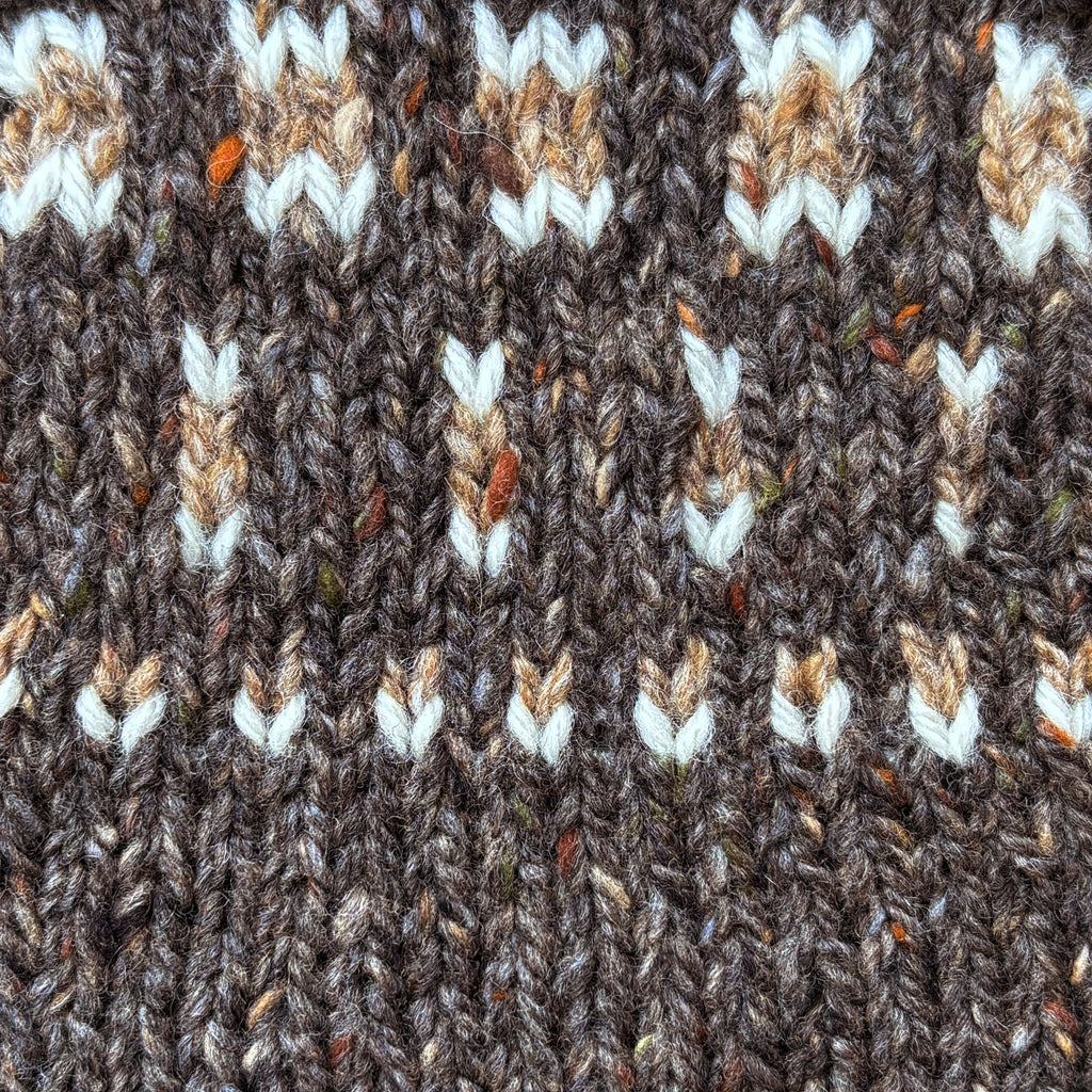 Der videoguides til alle teknikkerne i opskriften, så du kommer sikkert i mål. Sweateren strikkes i vores Tweed kombineret med Highland, som anvendes til én af kontrastfarverne.